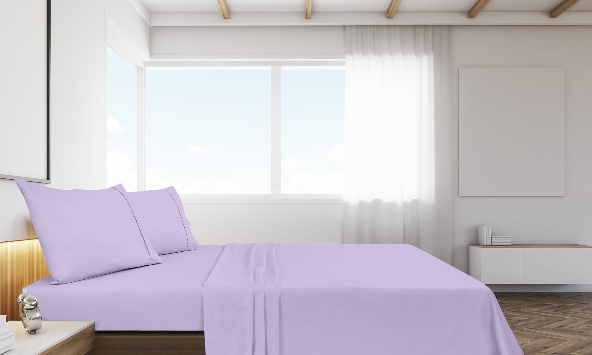Royale Linens Flat Sheet Only - Brushed 1800 Microfiber - Ultra Soft & Breathable - Wrinkle Resistant - Hotel Quality Flat Sheet Sold Separately - Top Sheet for Bed - (Lavender)