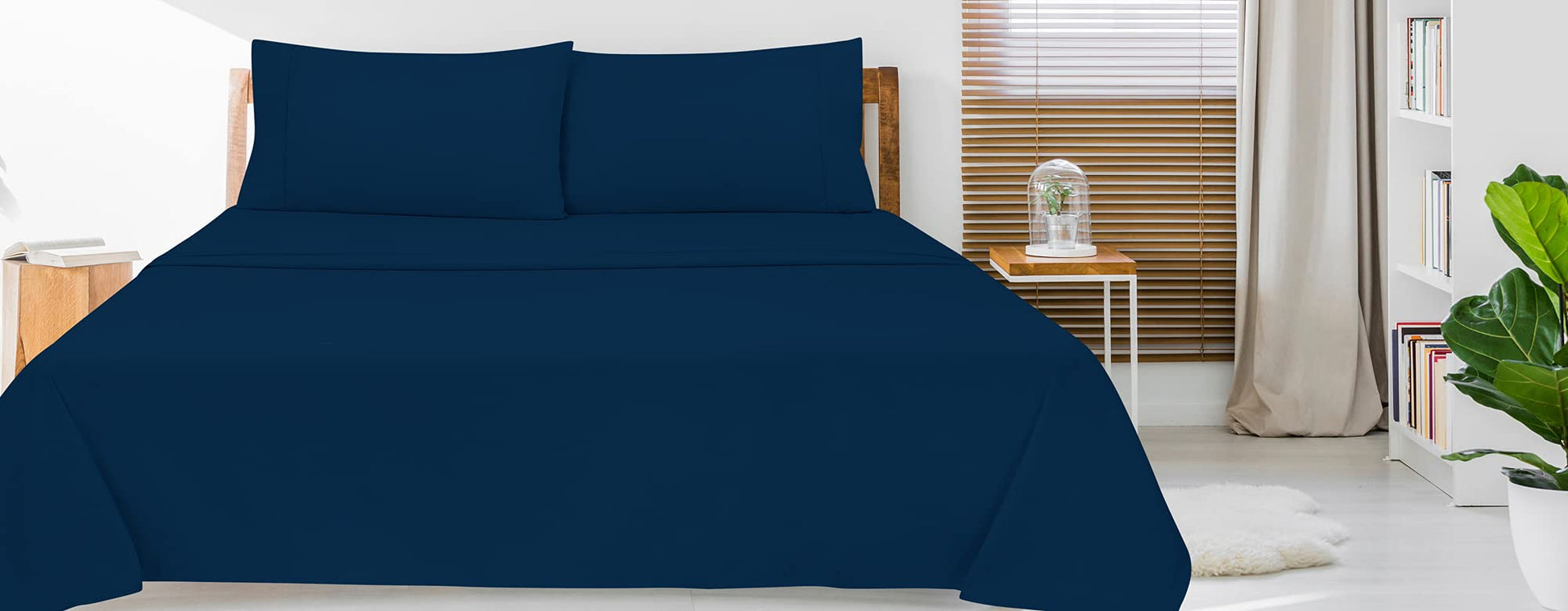 Royale Linens Flat Sheet Only - Brushed 1800 Microfiber - Ultra Soft & Breathable - Wrinkle & Stain Resistant - Hotel Quality Flat Sheet Sold Separately - Top Sheet for Bed - (Navy)