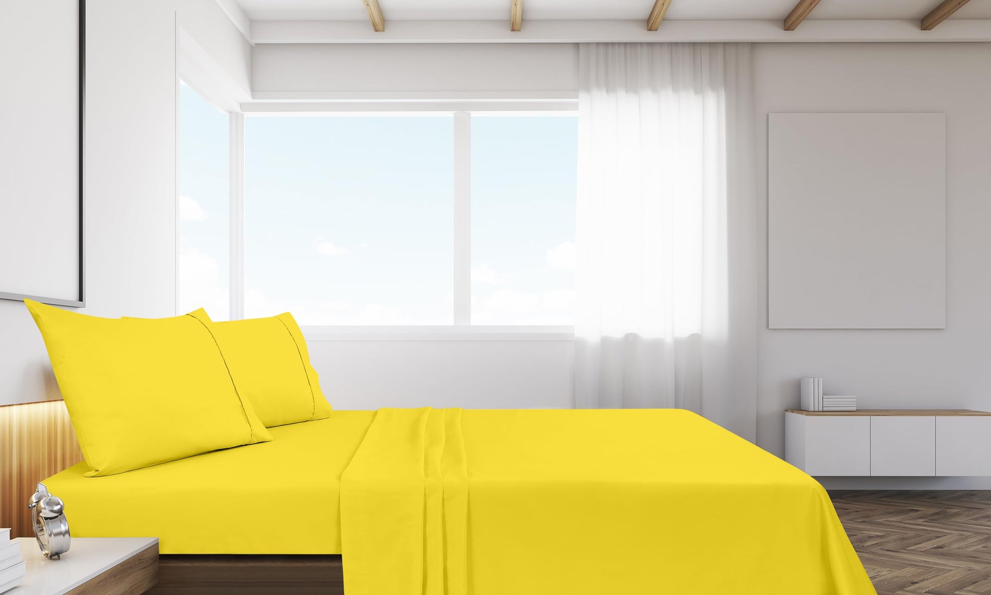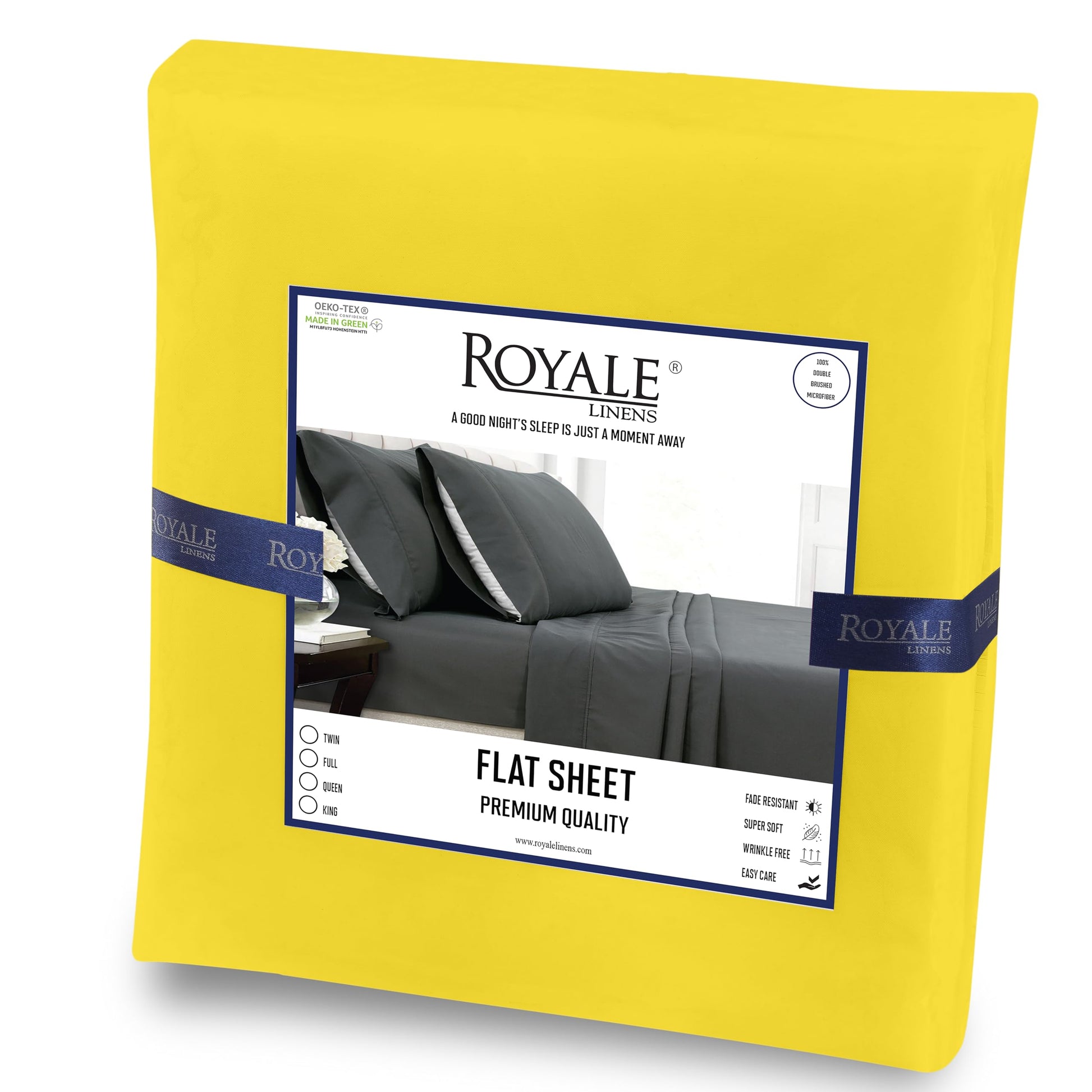 Royale Linens Flat Sheet Only - Brushed 1800 Microfiber - Ultra Soft & Breathable - Wrinkle Resistant - Hotel Quality Flat Sheet Sold Separately - Top Sheet for Bed - (Yellow)