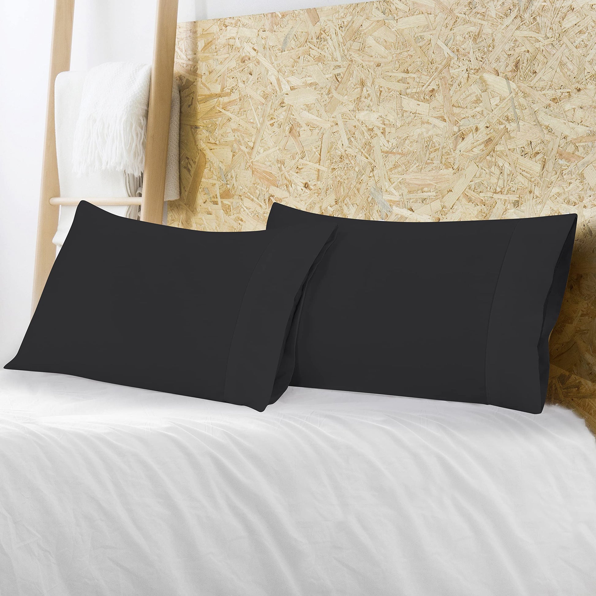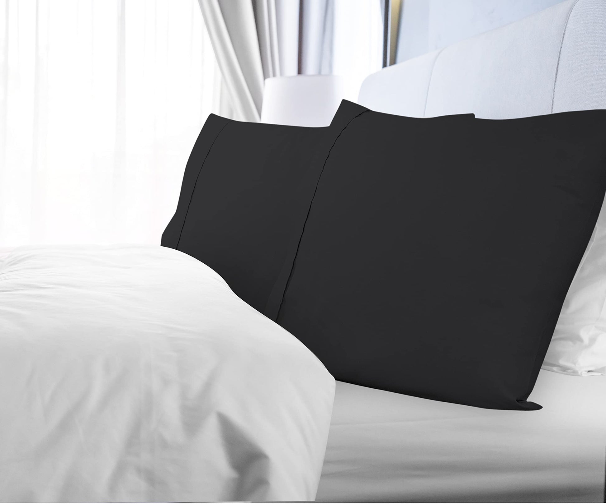 Royale Linens Pillowcase Set of 2 - Bed Pillow Cover - Black Pillowcases - 1800 Brushed Microfiber, Wrinkle & Fade Resistant - Soft & Cozy- Pillow Case ( Black)