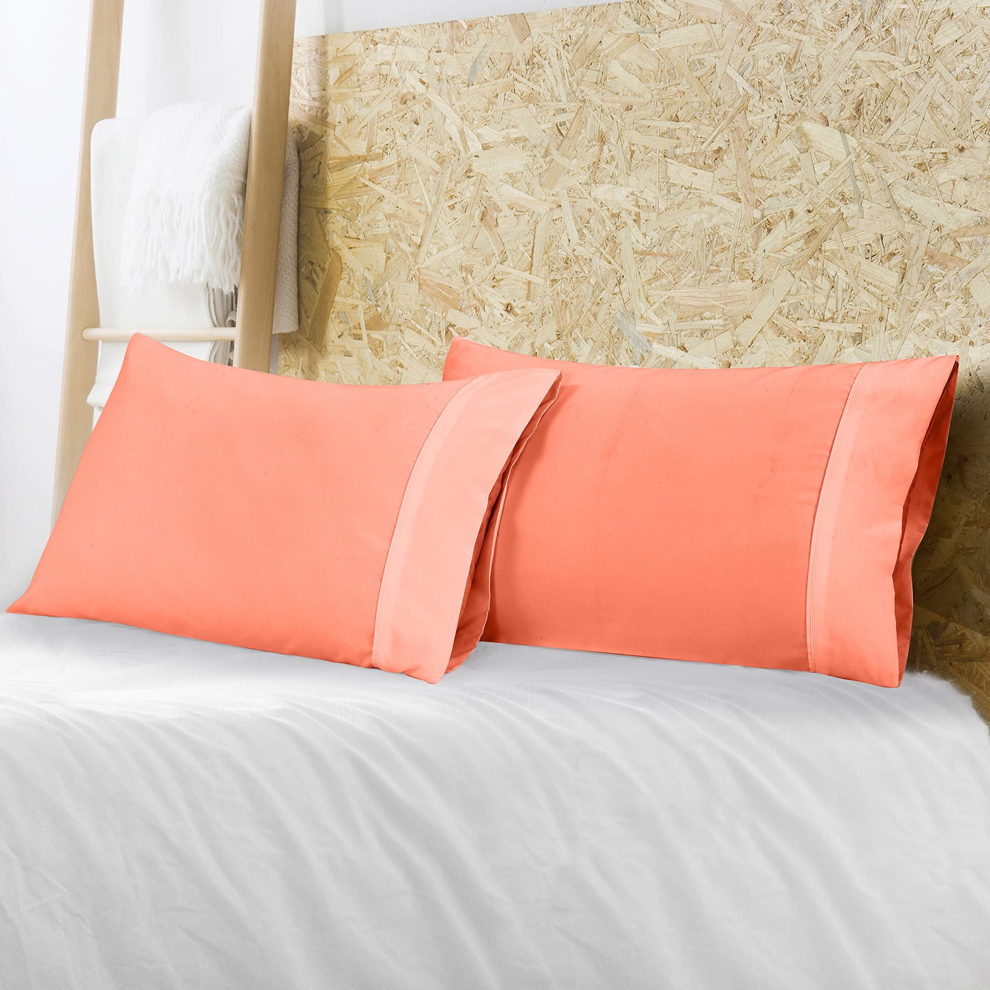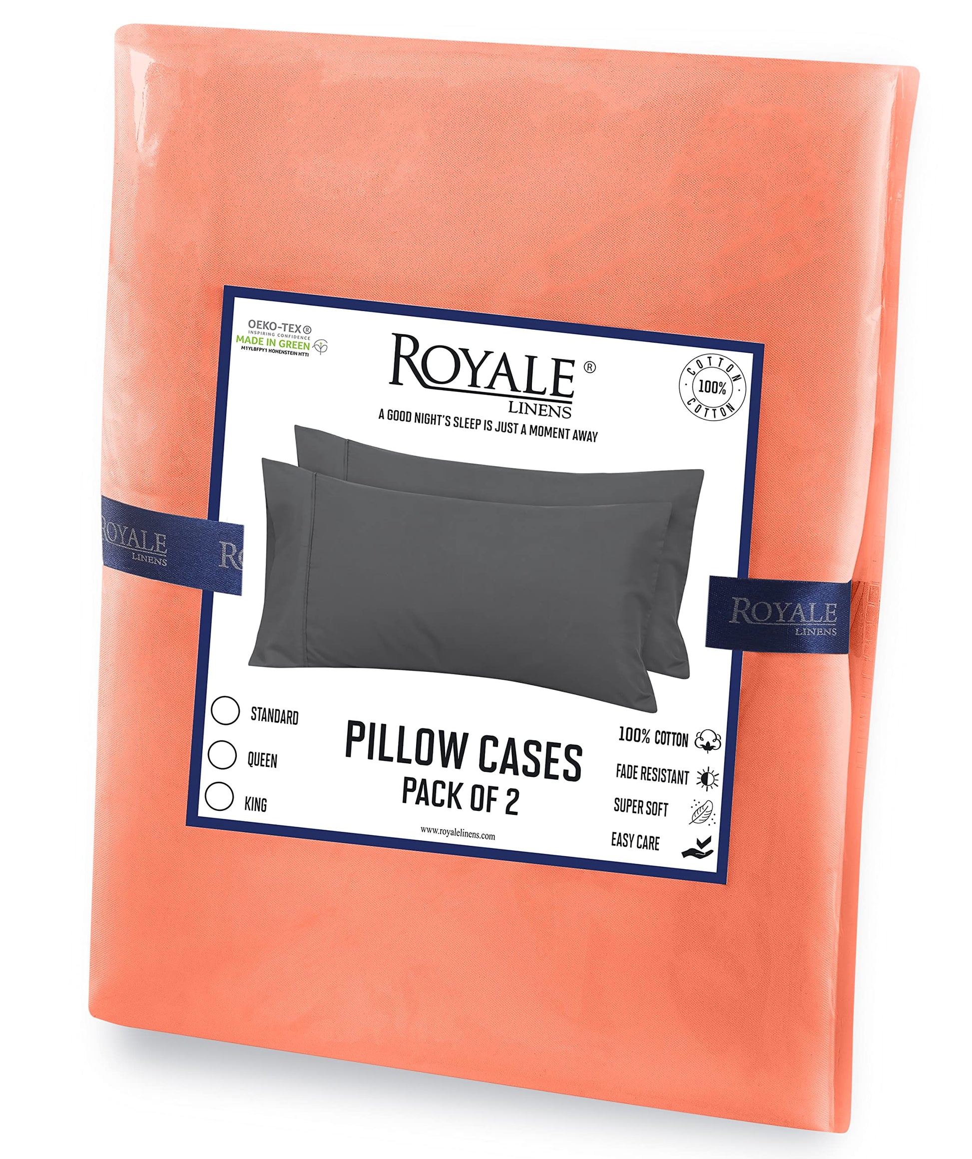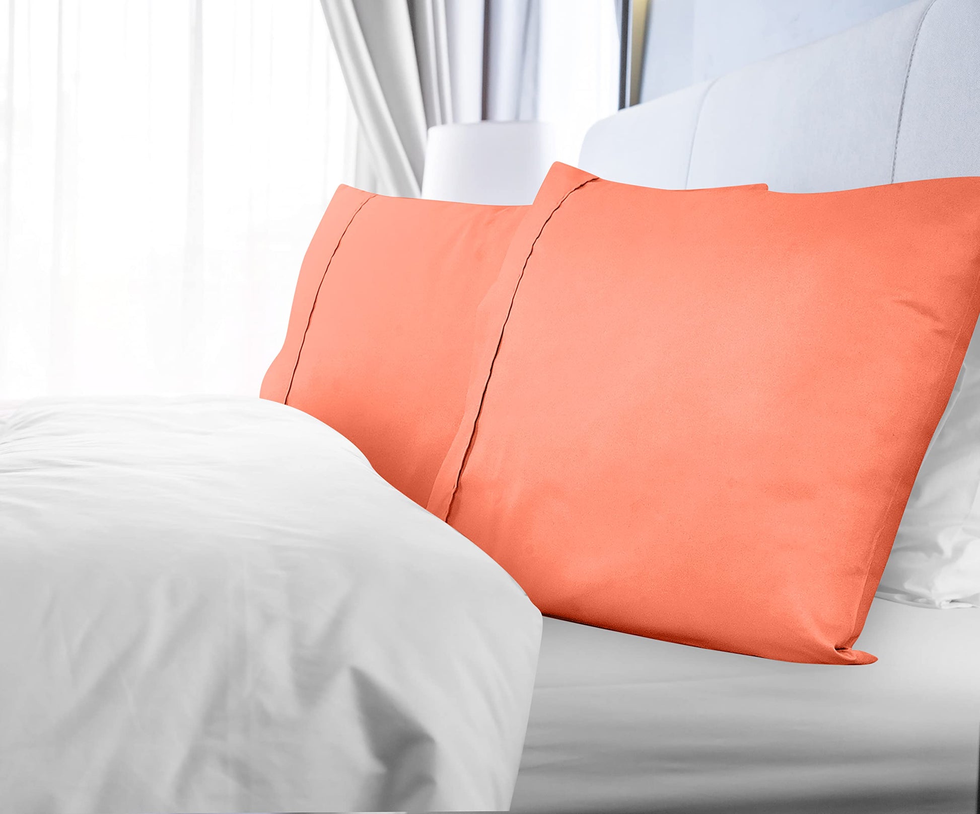 Royale Linens Pillowcase Set of 2 - Bed Pillow Cover - Coral Pillowcases - 1800 Brushed Microfiber, Wrinkle & Fade Resistant - Soft & Cozy- Pillow Case ( Coral)