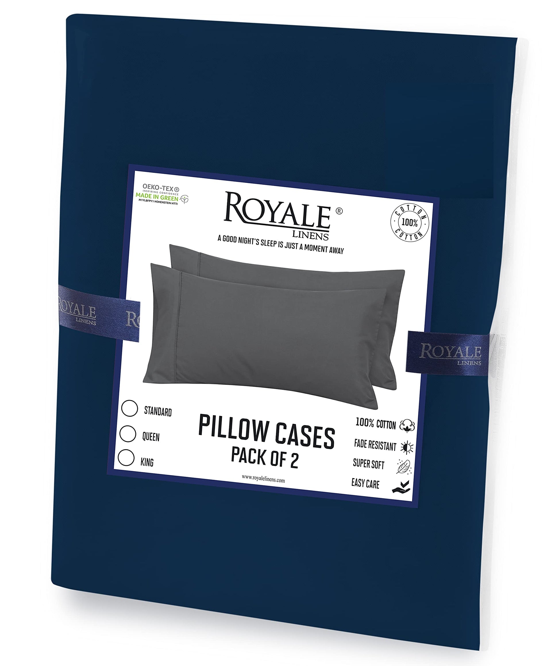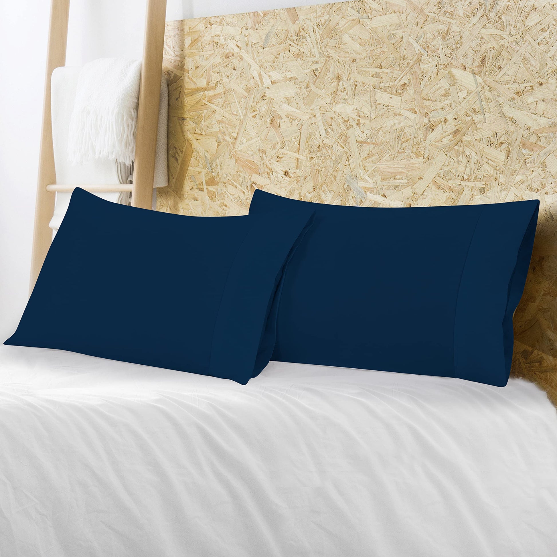 Royale Linens Pillowcase Set of 2 - Bed Pillow Cover - Navy Pillowcases - 1800 Brushed Microfiber, Wrinkle & Fade Resistant - Soft & Cozy- Pillow Case ( Navy)