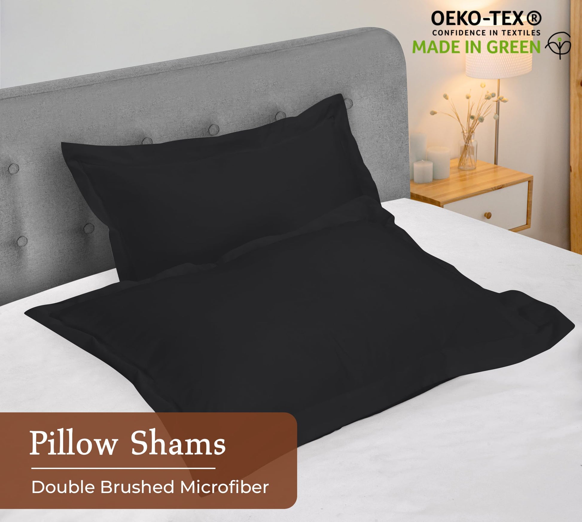 Royale Linens Pillow Shams 2 Pack- Brushed 1800 Microfiber - Bed Pillow Shams, Wrinkle Resistant Super Soft and Cozy - Back Overlap Closure - Oxford Pillowcase (Black)
