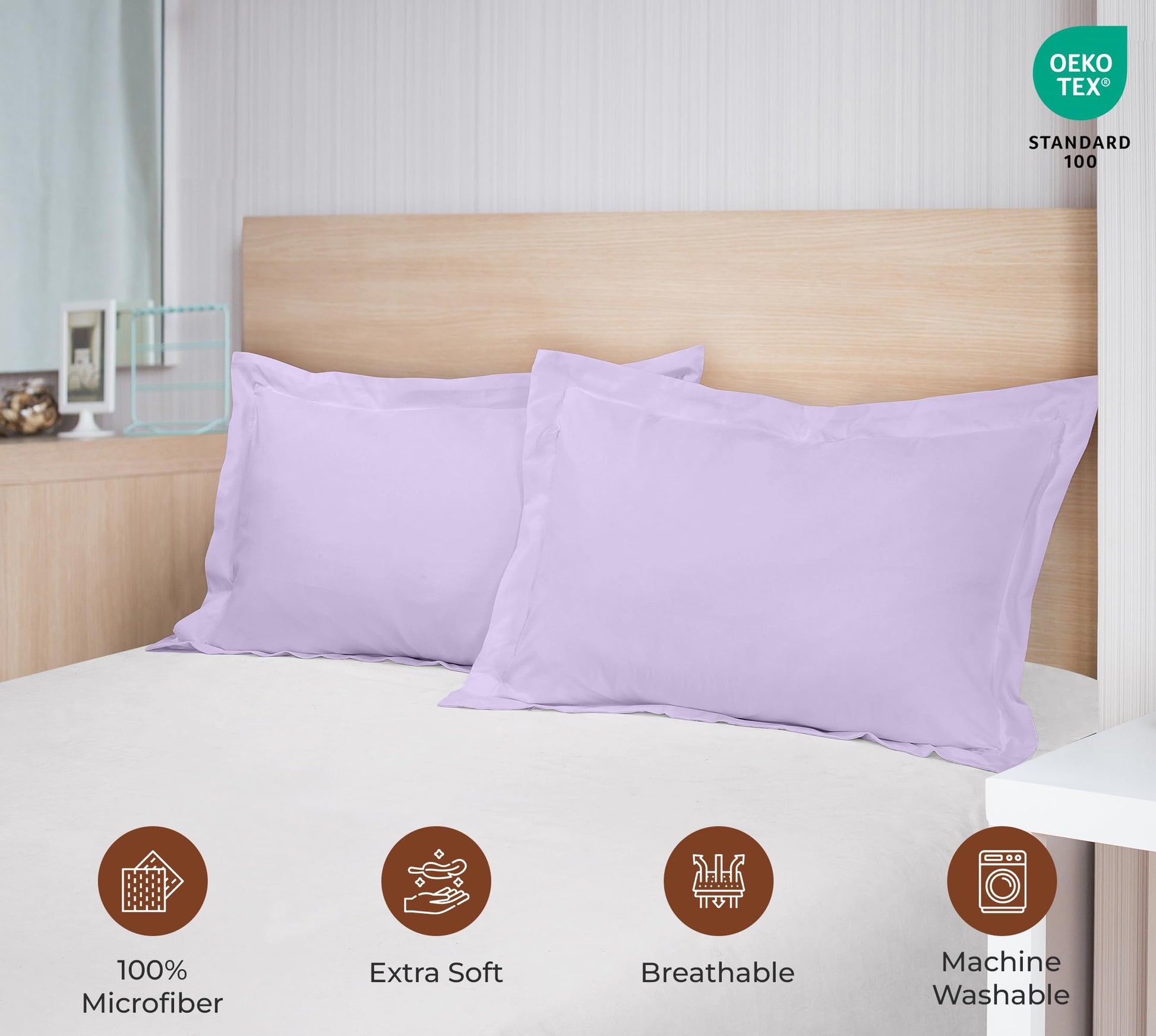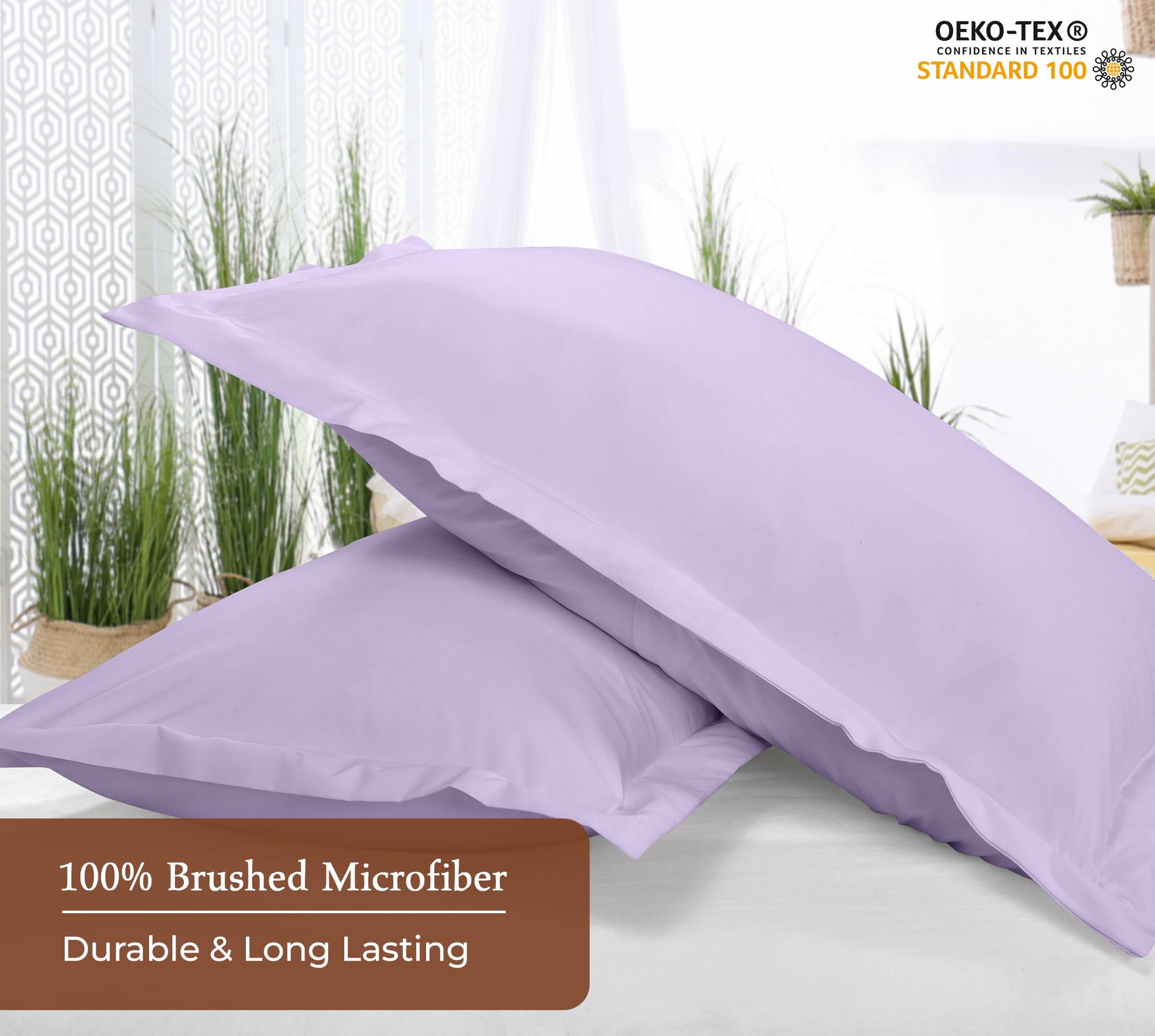 Royale Linens Pillow Shams 2 Pack - Brushed 1800 Microfiber - Bed Pillow Shams, Wrinkle & Fade Resistant Soft and Cozy -Back Overlap Closure - Oxford Pillowcase ( Lavender)