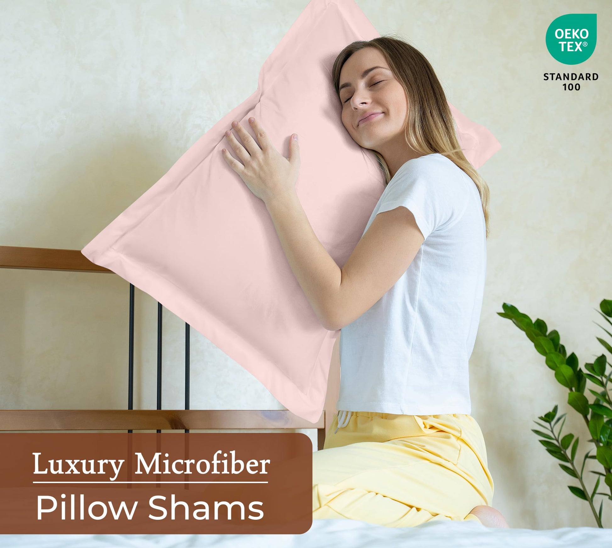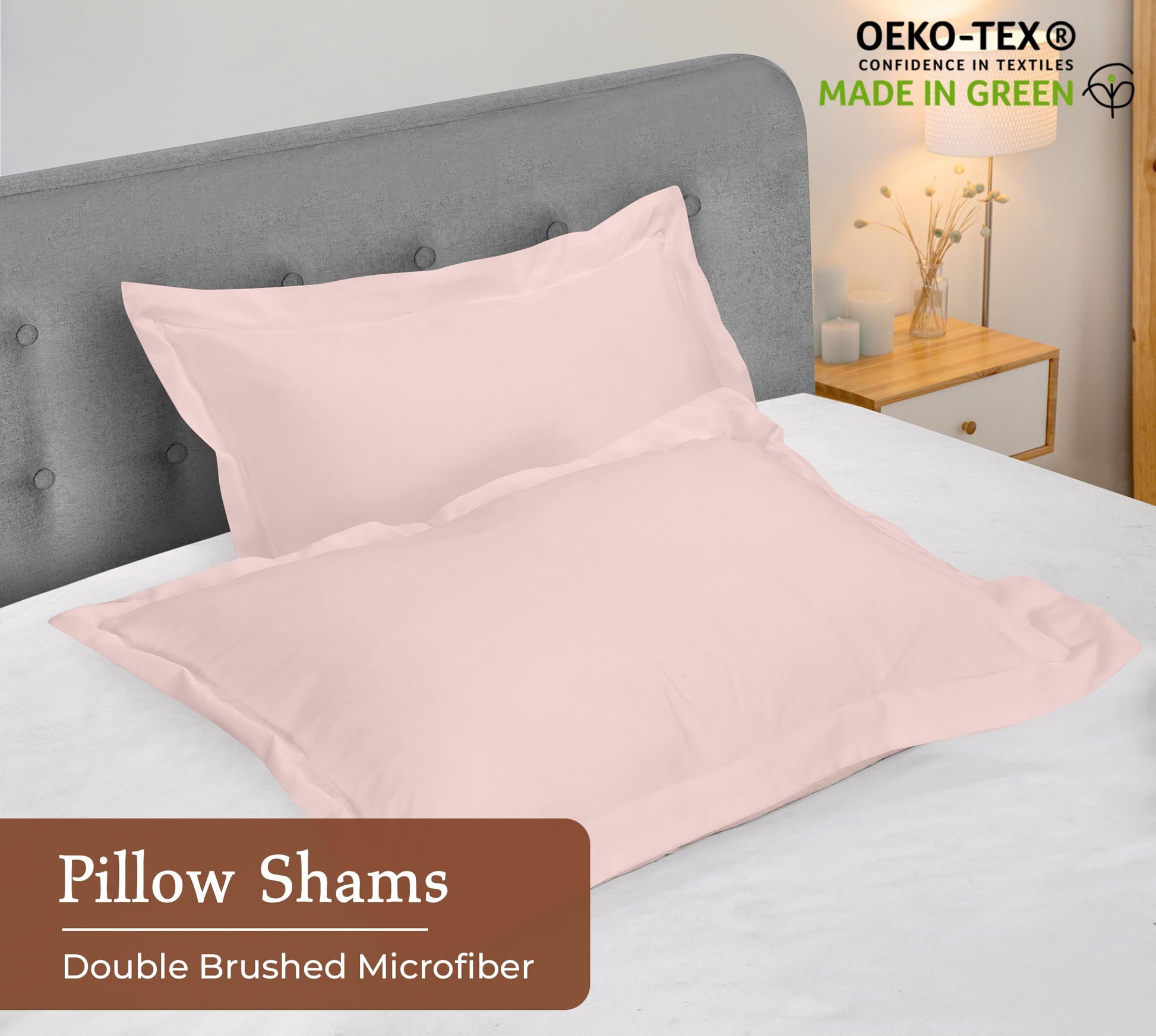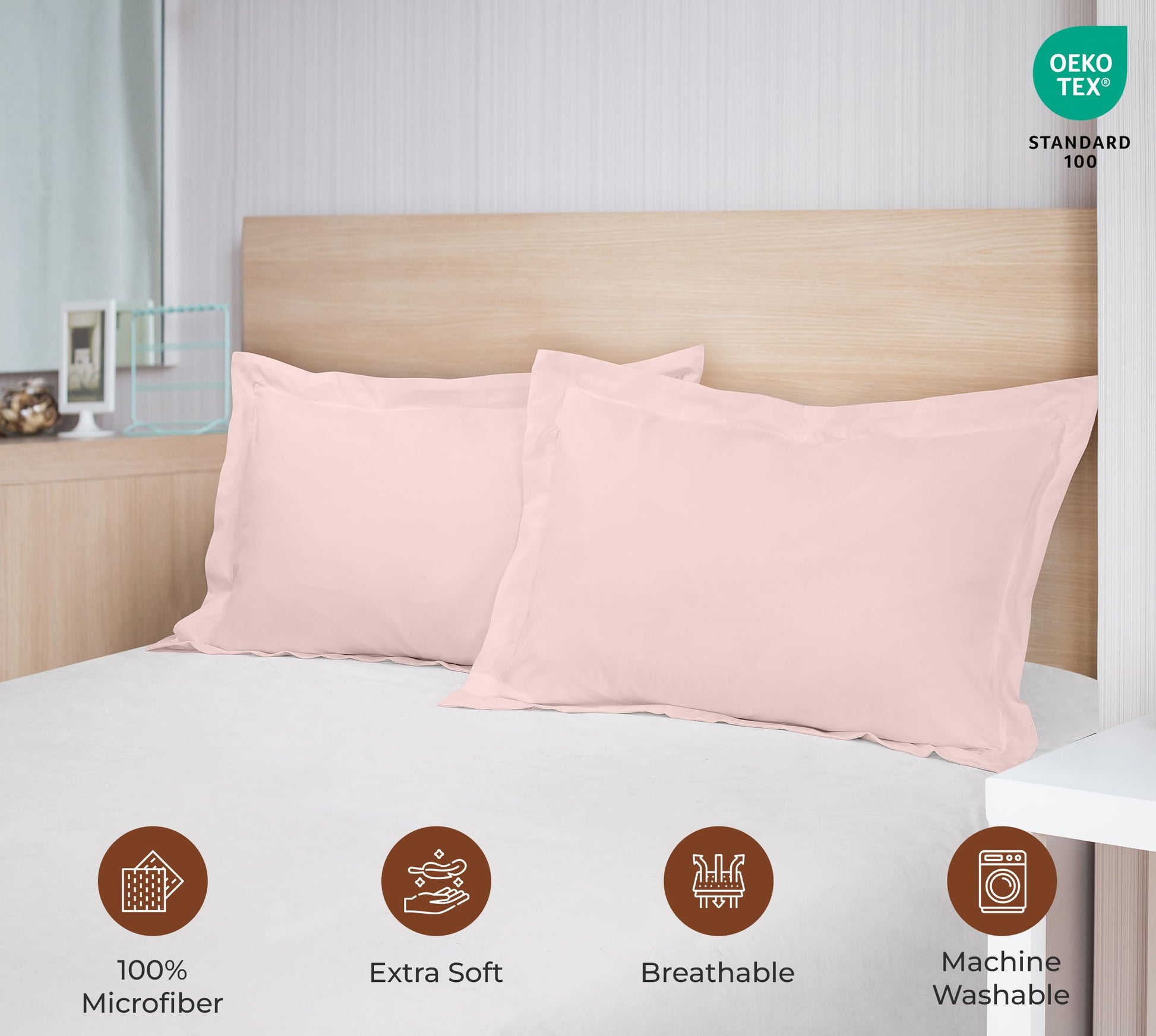 Royale Linens Pillow Shams 2 Pack - Brushed 1800 Microfiber - Bed Pillow Shams, Wrinkle Resistant Super Soft and Cozy - Back Overlap Closure - Oxford Pillowcase (Pink)