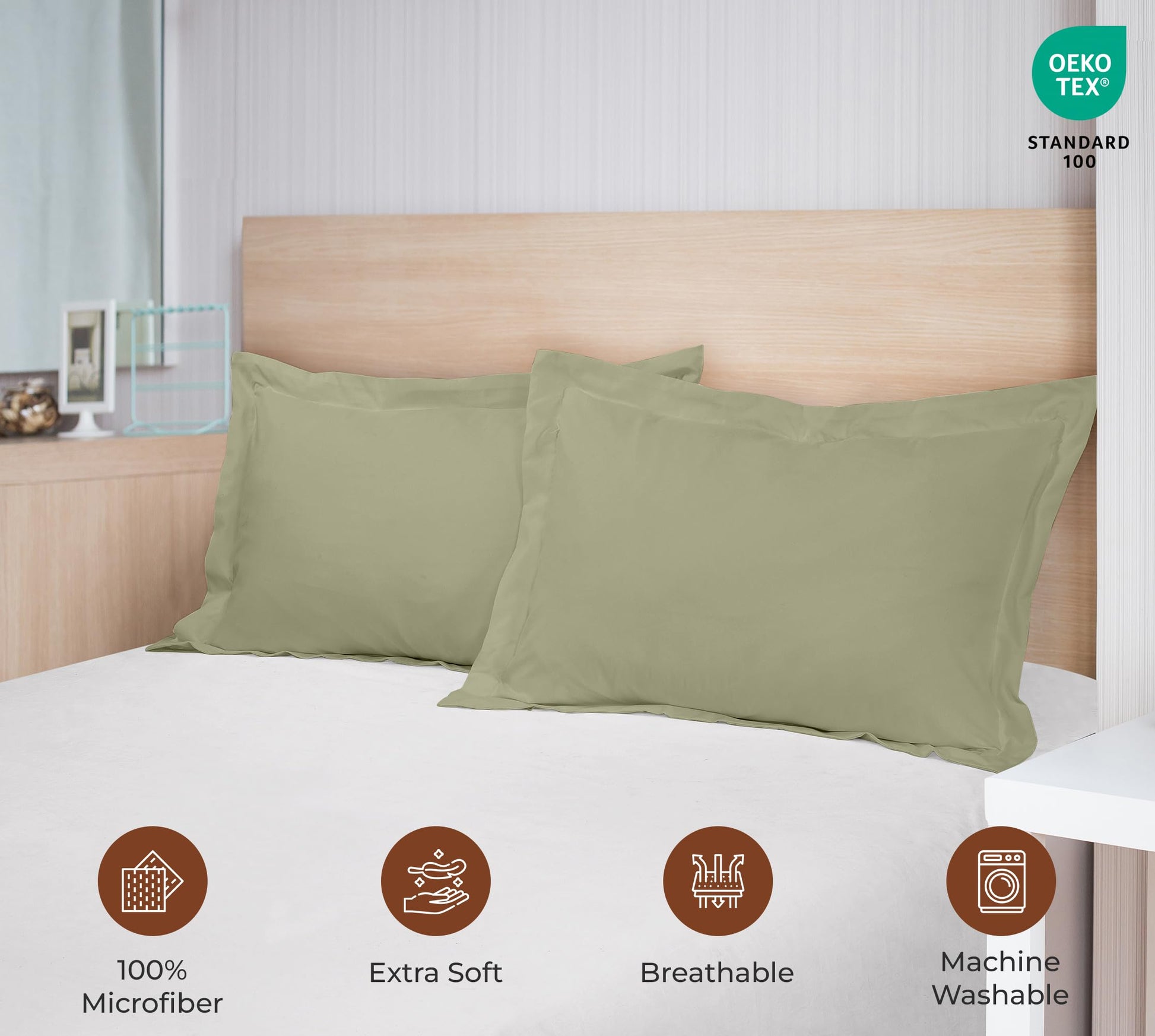 Royale Linens Pillow Shams 2 Pack -Brushed 1800 Microfiber -Bed Pillow Shams, Wrinkle & Fade Resistant Super Soft and Cozy -Back Overlap Closure - Oxford Pillowcase (Sage)