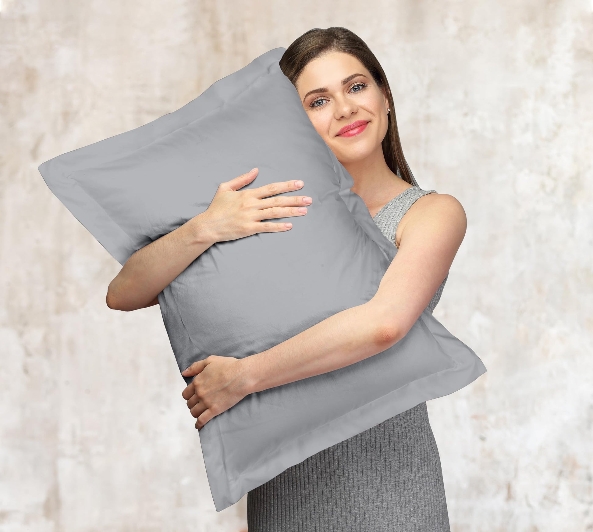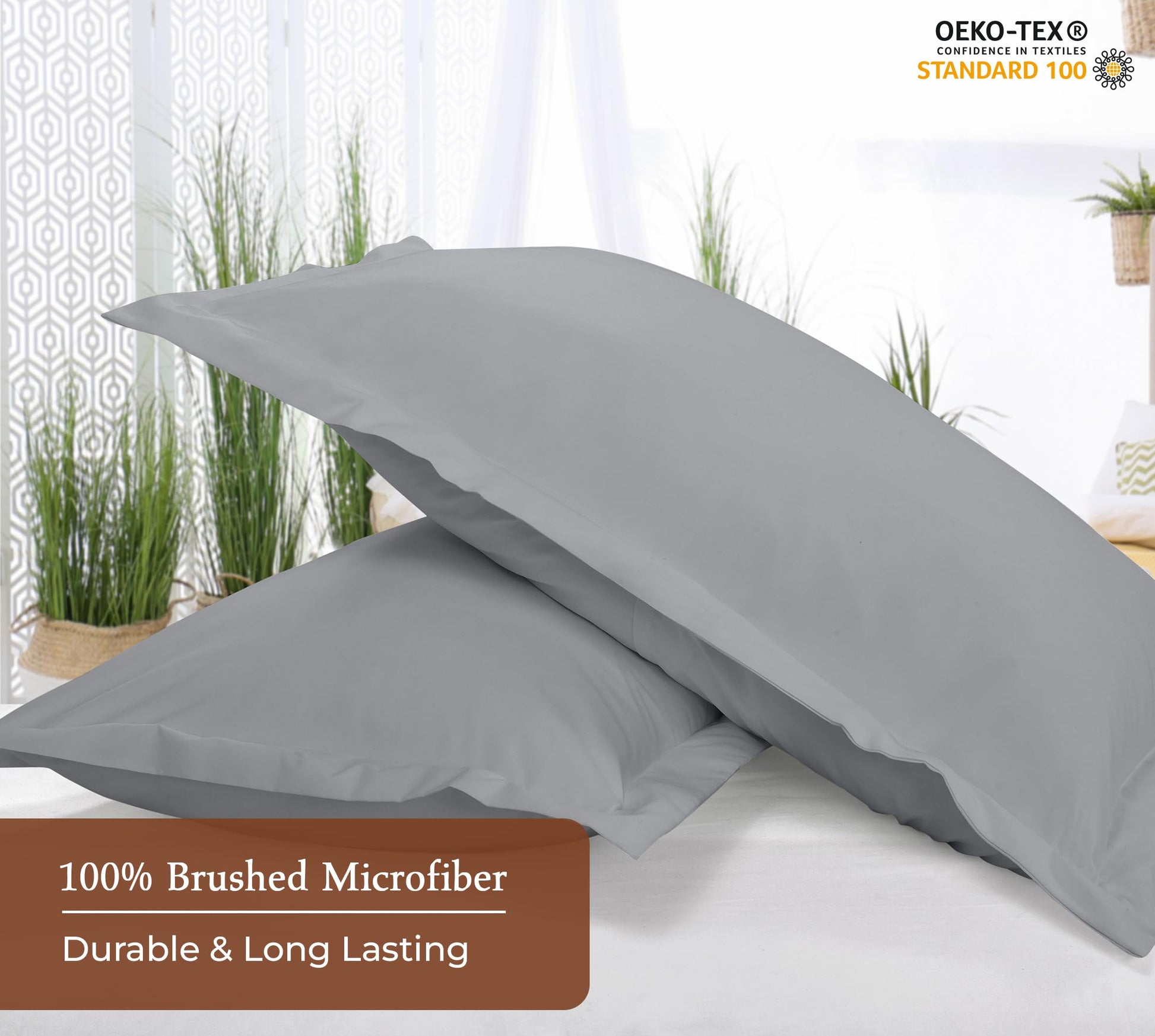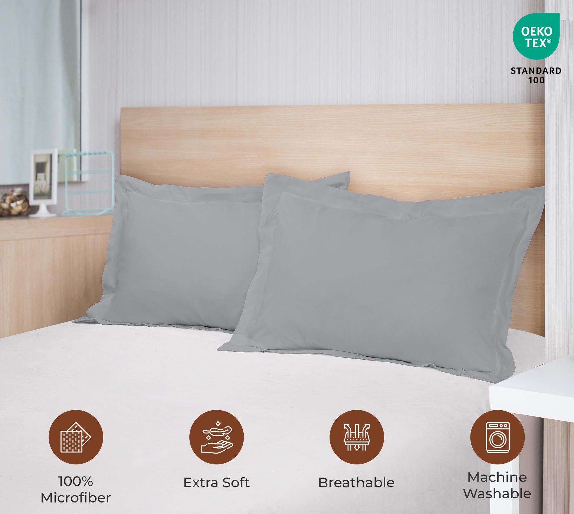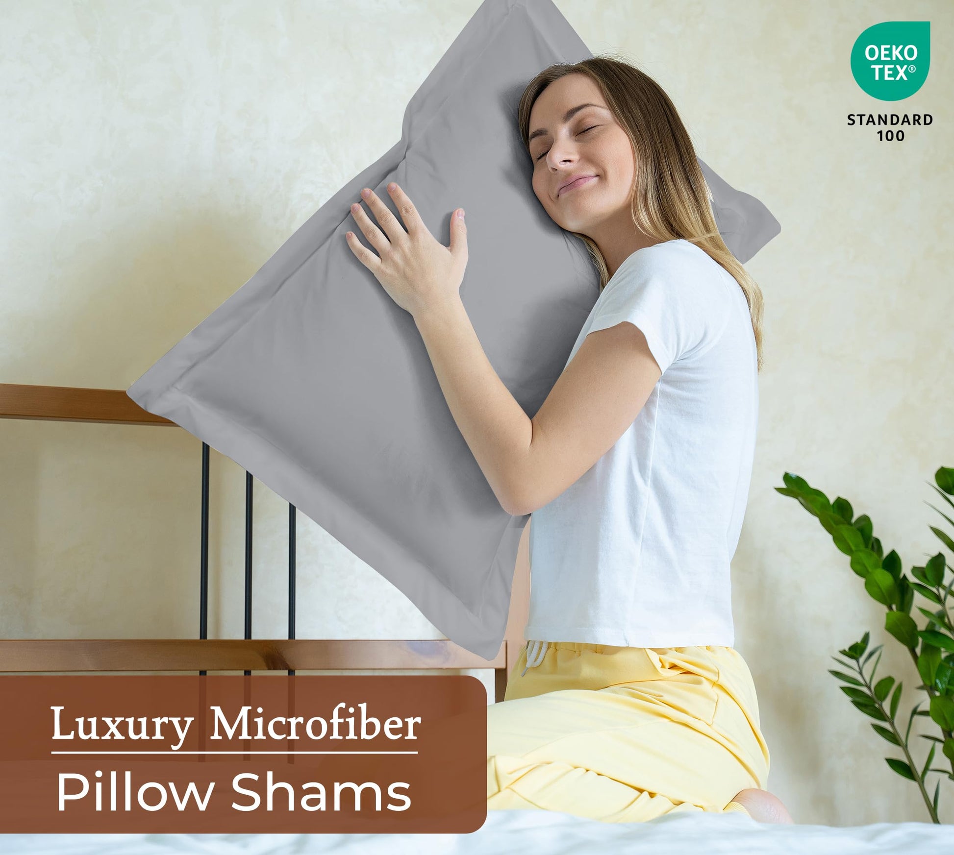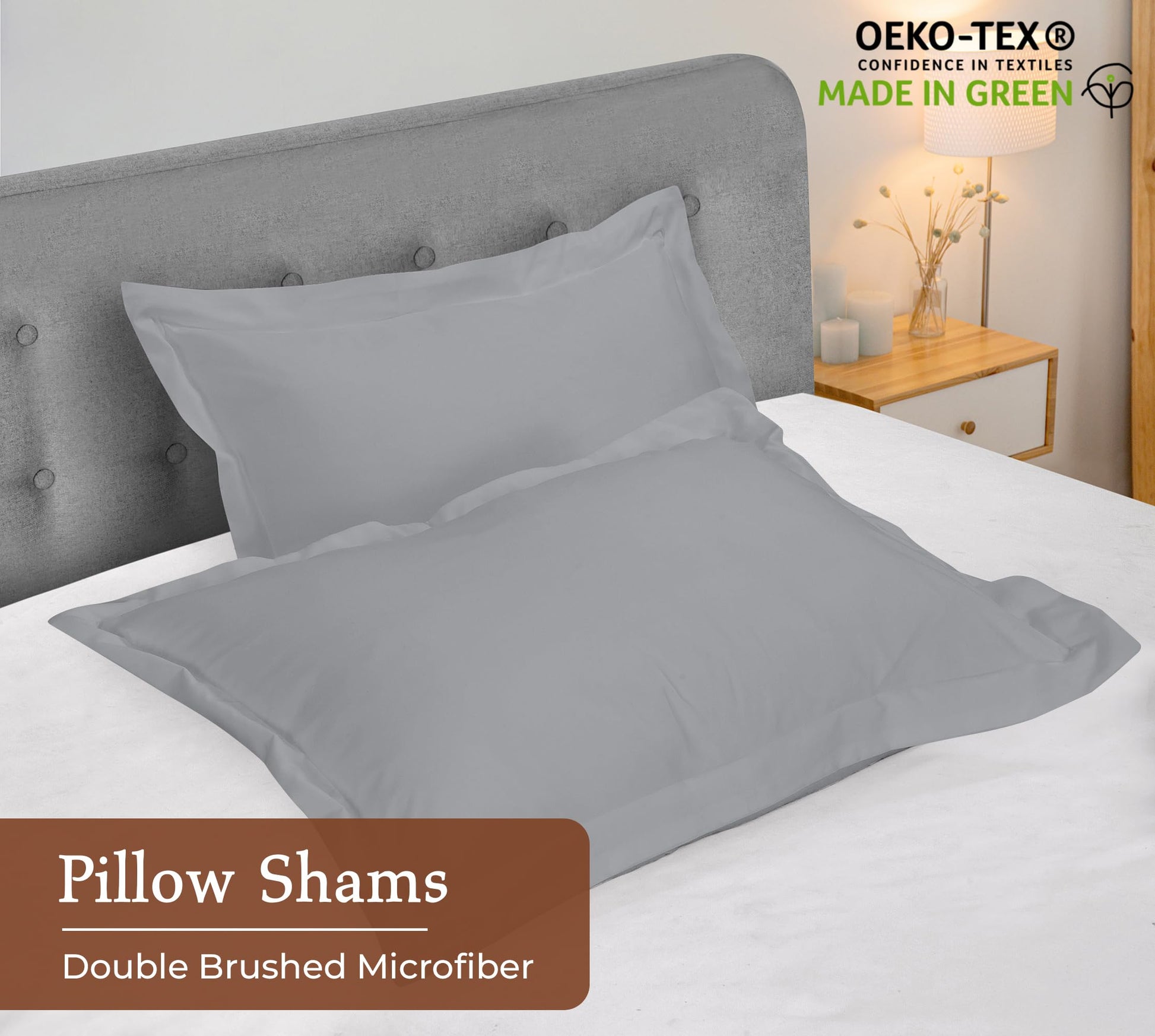 Royale Linens Pillow Shams 2 Pack - Brushed 1800 Microfiber - Bed Pillow Shams, Wrinkle Resistant Super Soft and Cozy - Back Overlap Closure - Oxford Pillow Case (Silver)