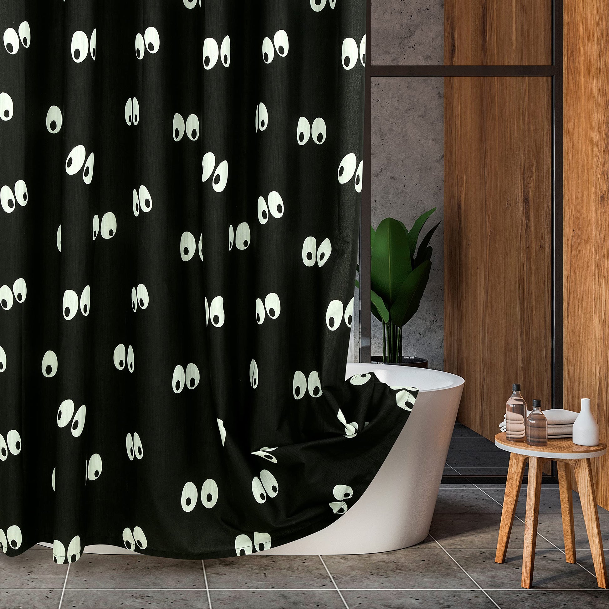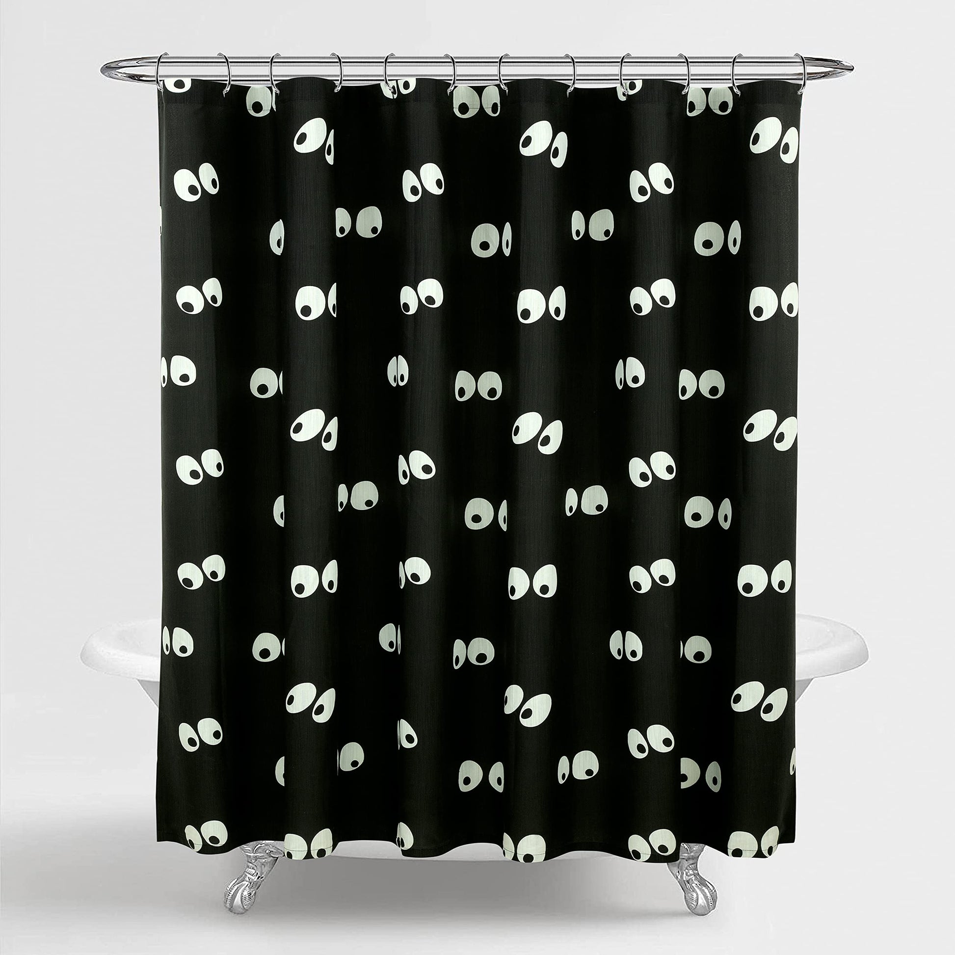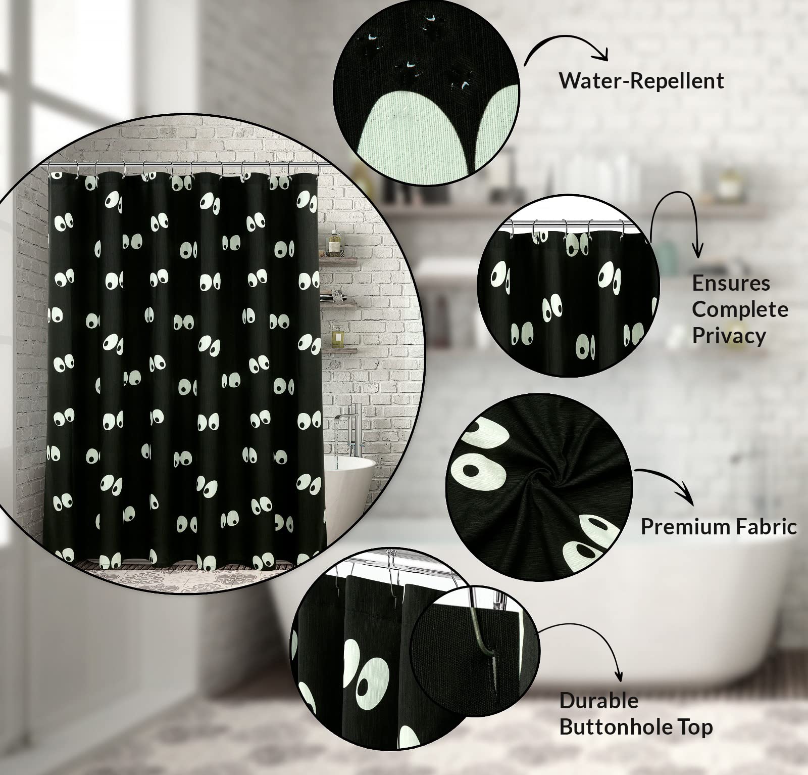 ROYALE LINEN Halloween Printed Shower Curtain 72 X 72 Inches - with Reinforced Button Holes - Spooky and Scary Design - Machine Washable & Water Resistant Shower Curtains (72" X 72" Eyes Black)