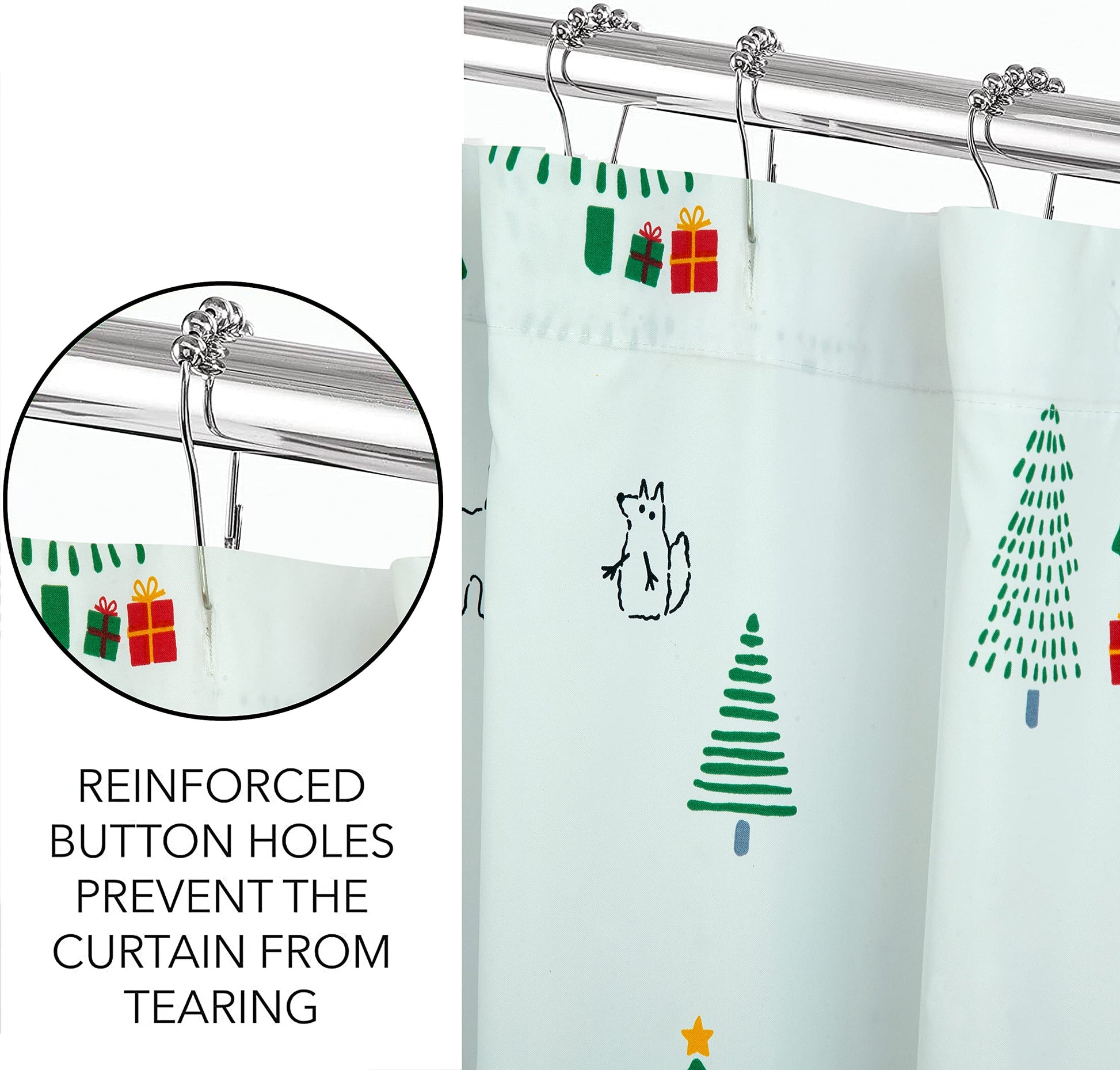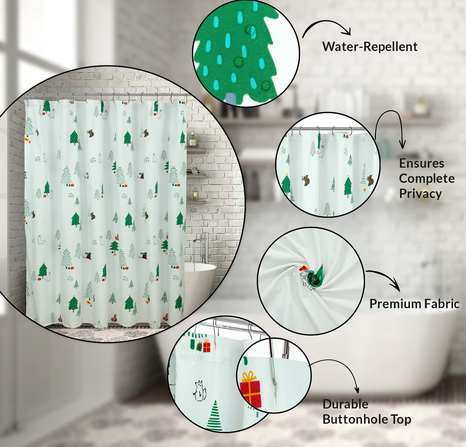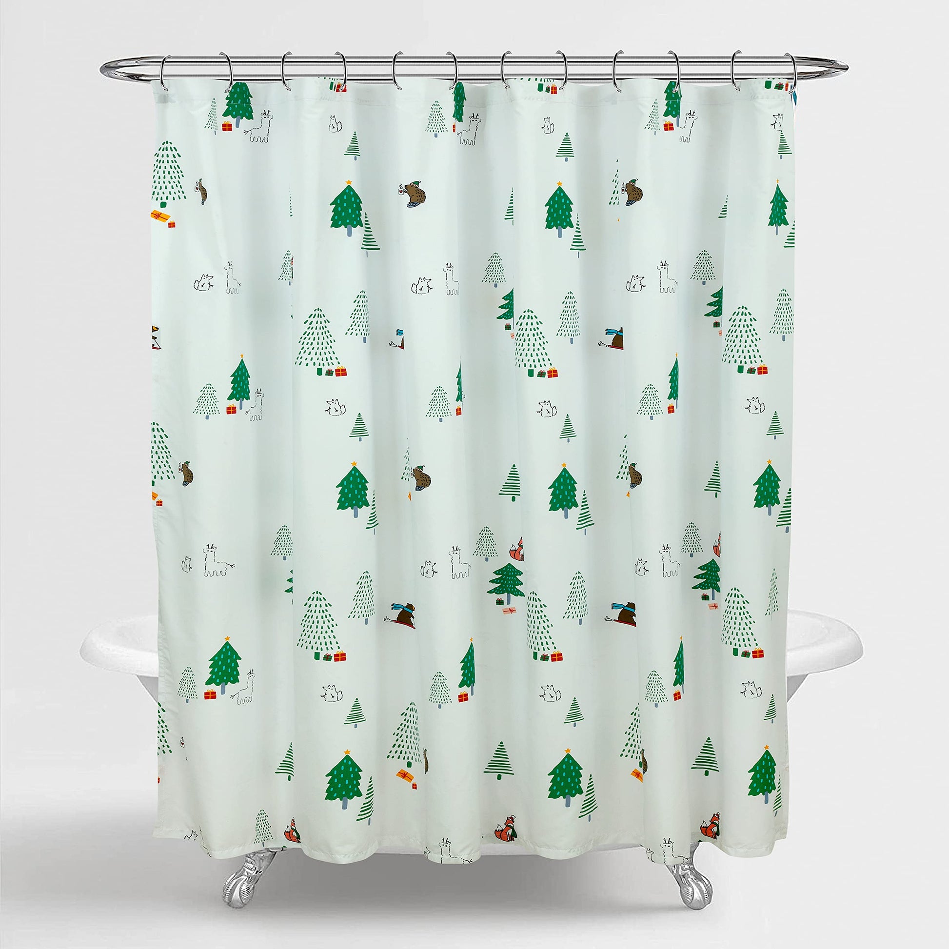 ROYALE LINENS Christmas Printed Shower Curtain 72 X 72 Inches - with Reinforced Button Holes - Christmas Design - Machine Washable & Water Resistant Shower Curtains (72" X 72" Holiday Critter)