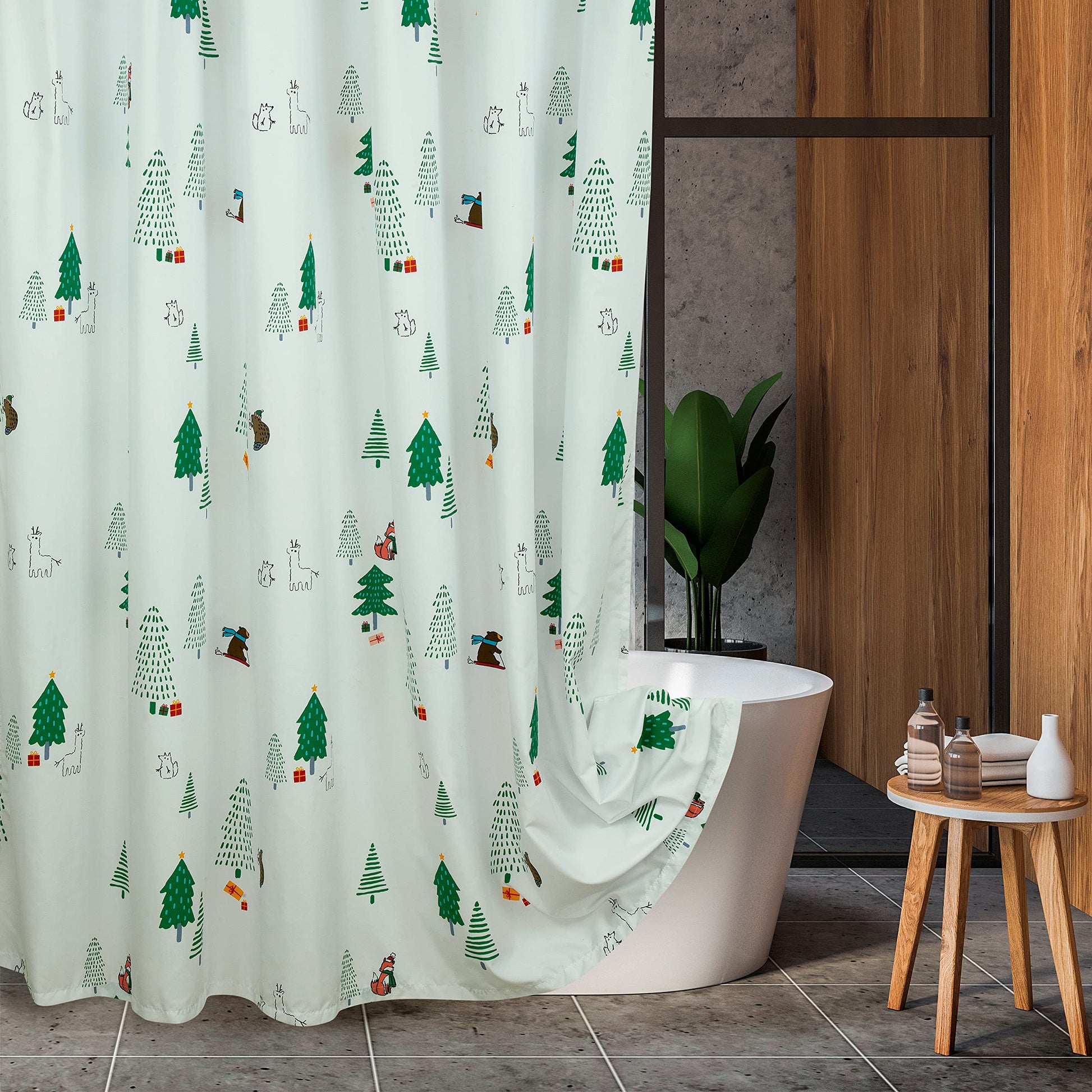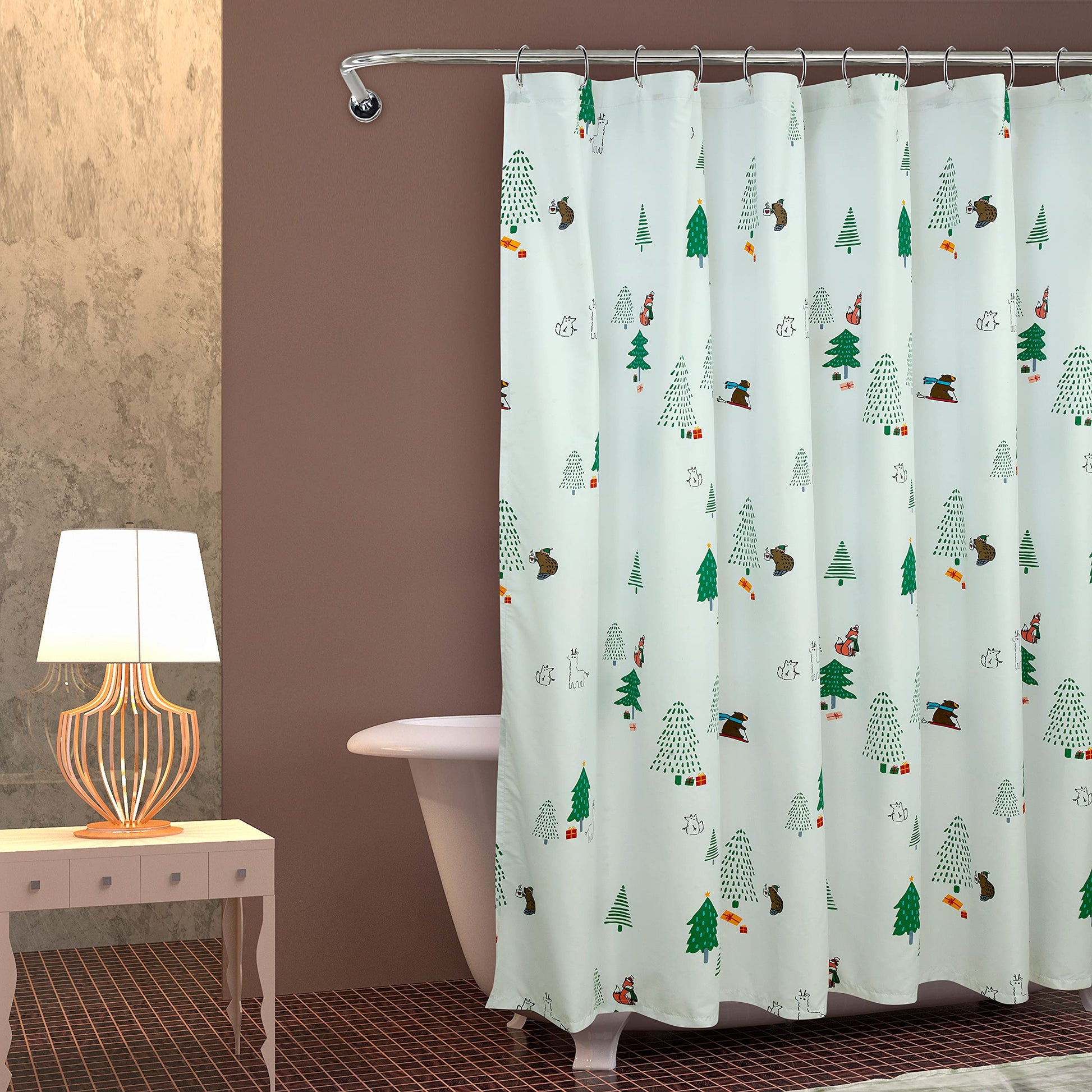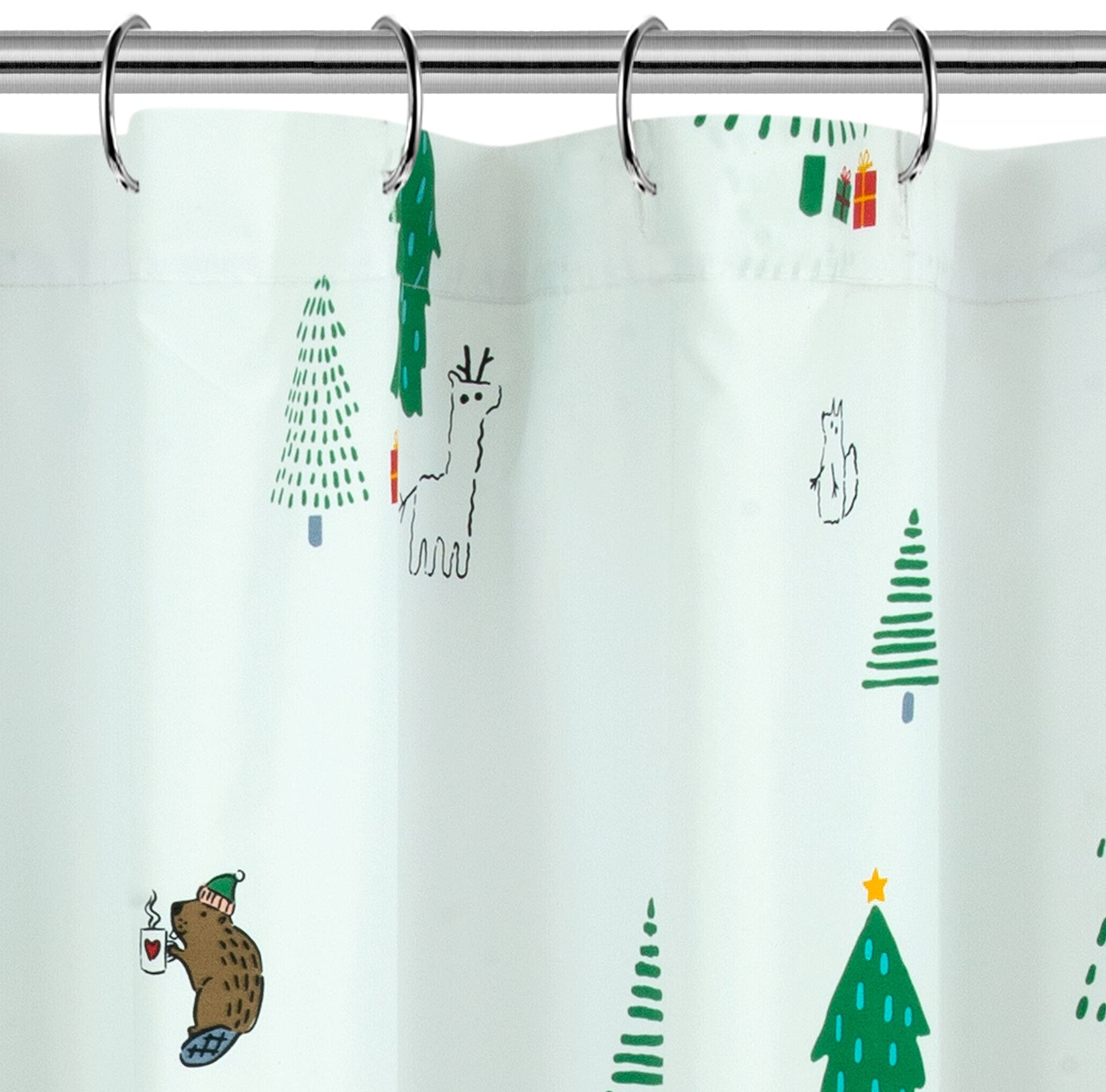 ROYALE LINENS Christmas Printed Shower Curtain 72 X 72 Inches - with Reinforced Button Holes - Christmas Design - Machine Washable & Water Resistant Shower Curtains (72" X 72" Holiday Critter)