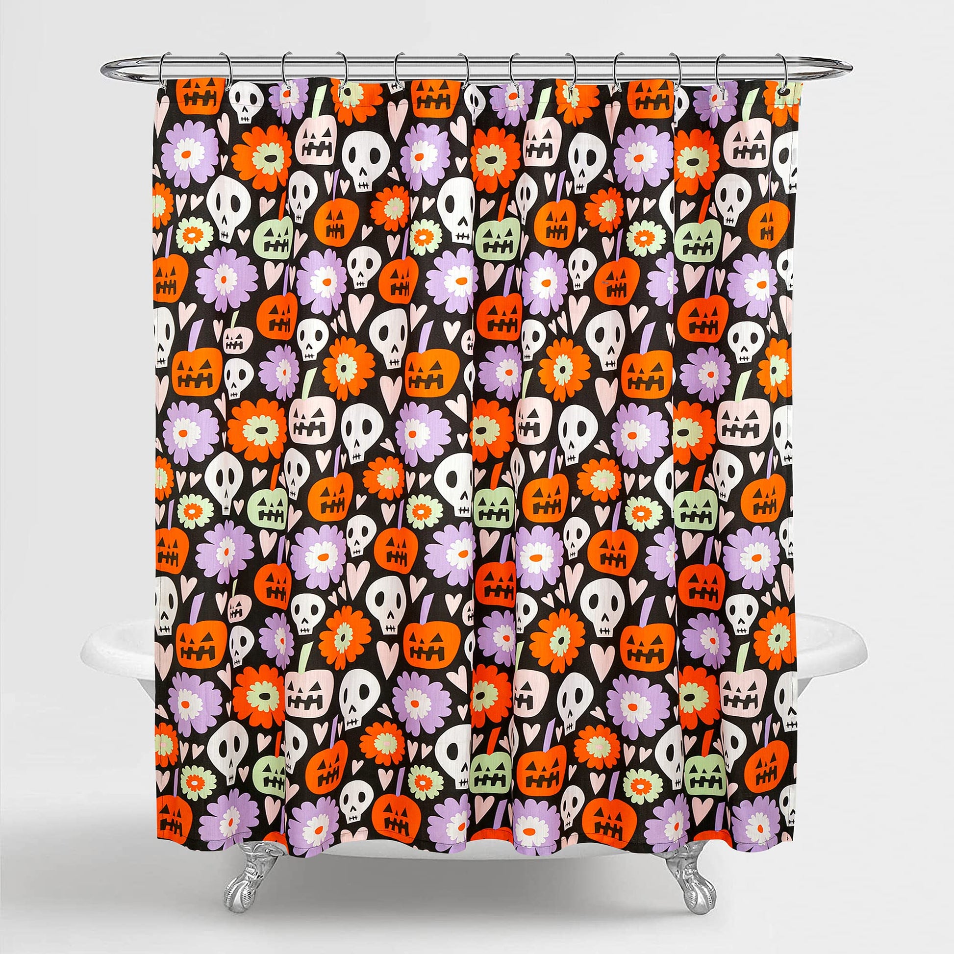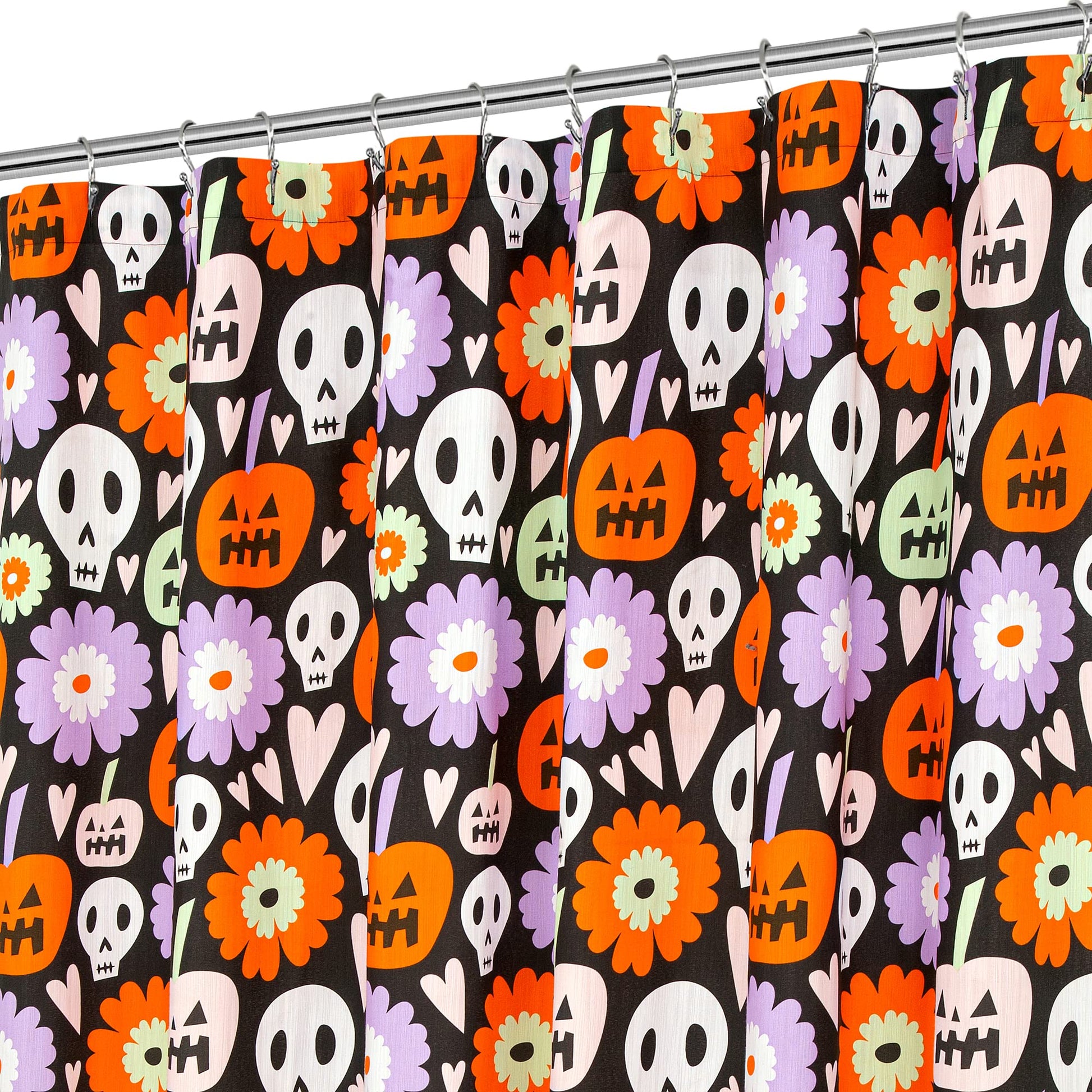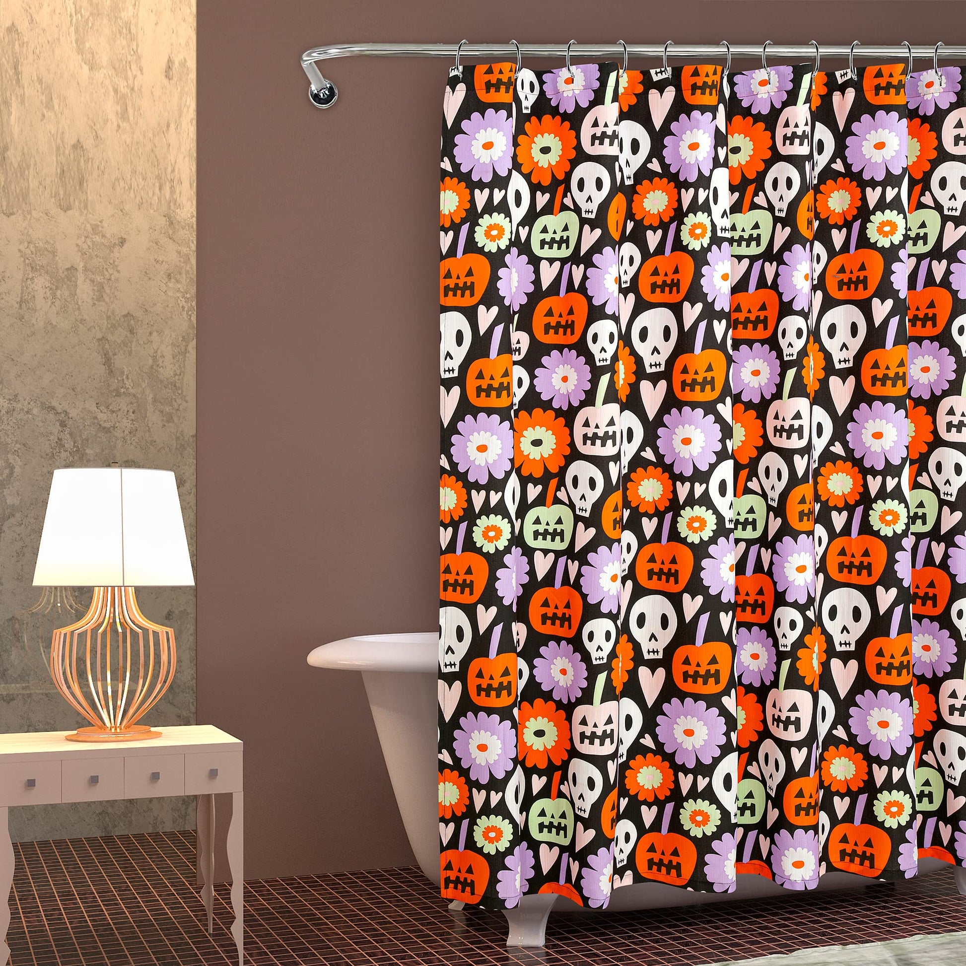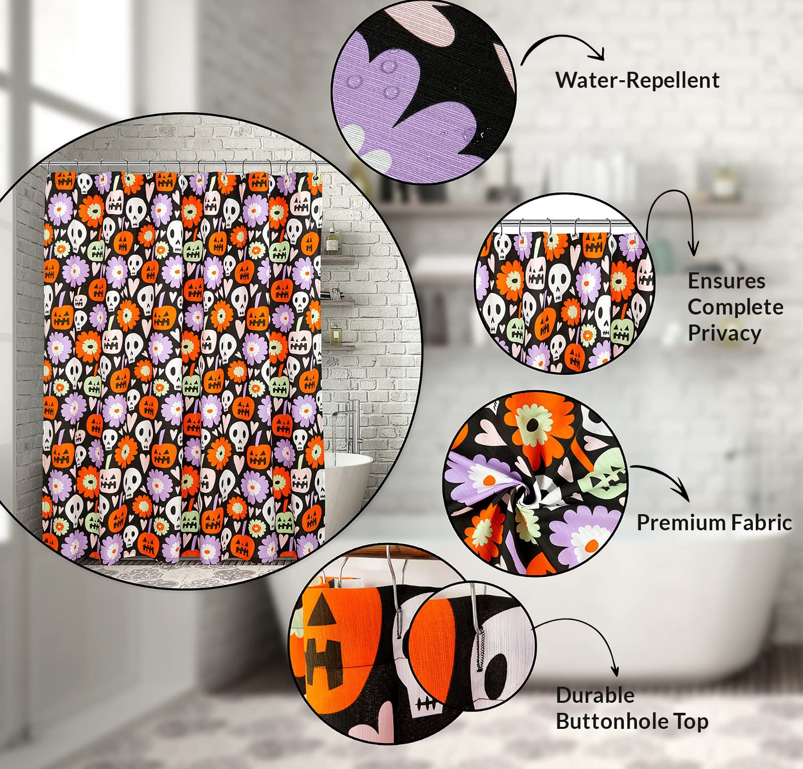 ROYALE LINEN Halloween Printed Shower Curtain 72 X 72 Inches - with Reinforced Button Holes - Spooky and Scary Design - Machine Washable & Water Resistant Shower Curtains (72" X 72" Skulls & Pumpkins)