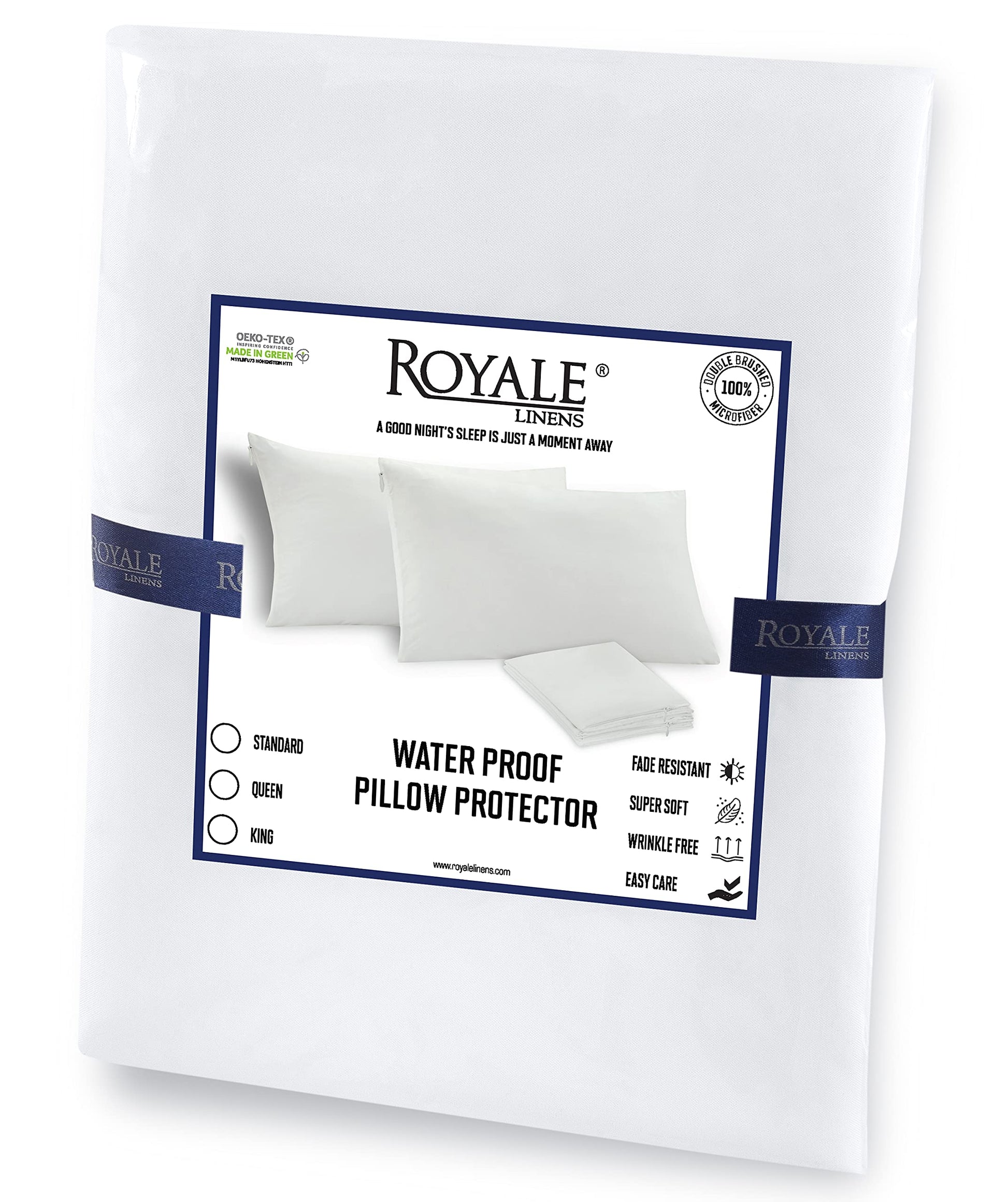 Royale Linens Waterproof Pillow protector 2 Pack - Pillow Encasement - 100% Microfiber - Zippered Closure - Pillow Case - Smooth & Breathable (Pack Of 2, White)