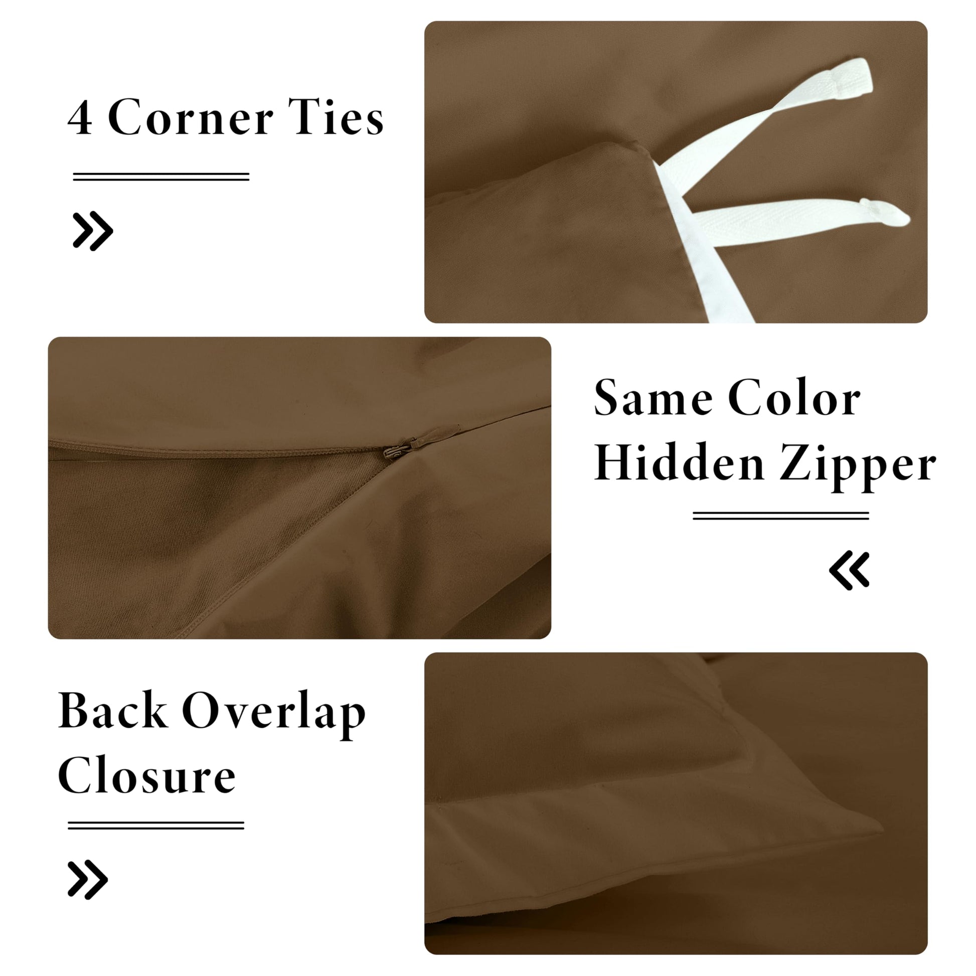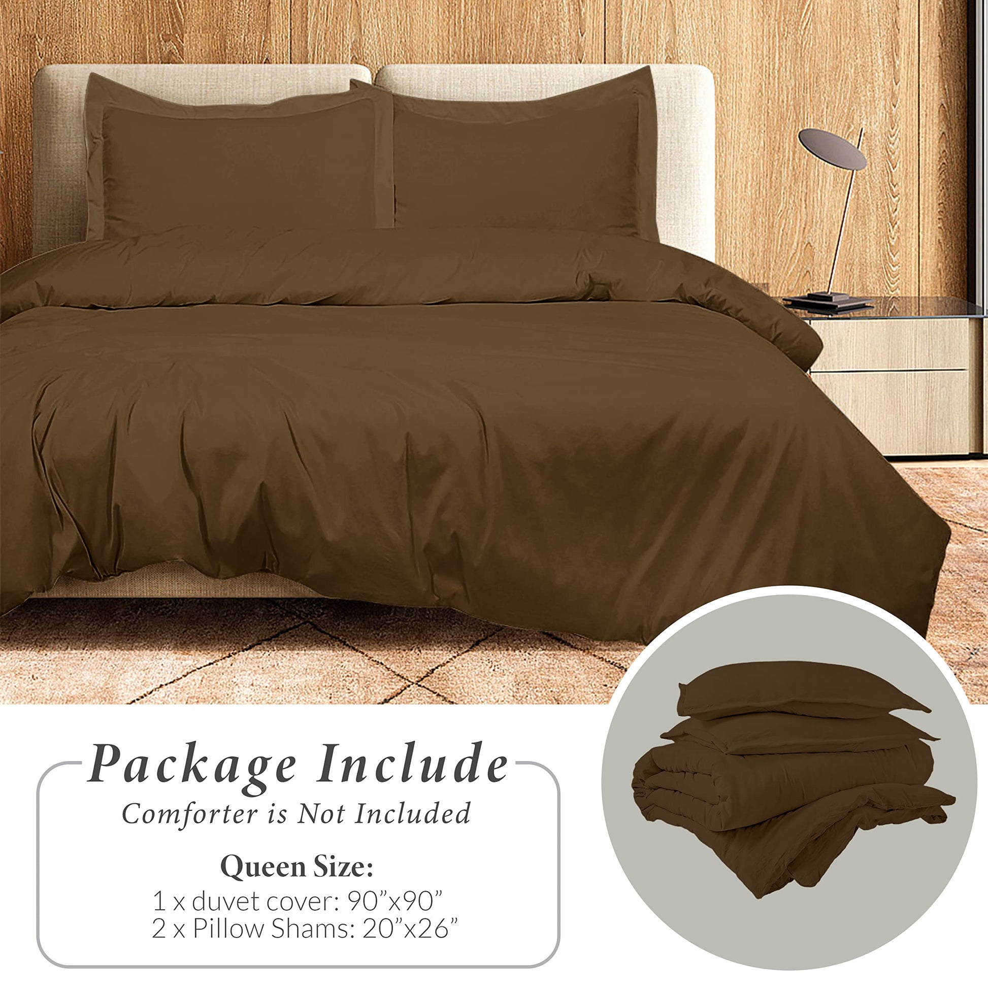 Royale Linens Chocolate Duvet Cover - Duvet Cover Set - 3 Piece Double Brushed Duvet Covers with Zipper Closure, 1 Duvet Cover and 2 Pillow Shams ( Chocolate)