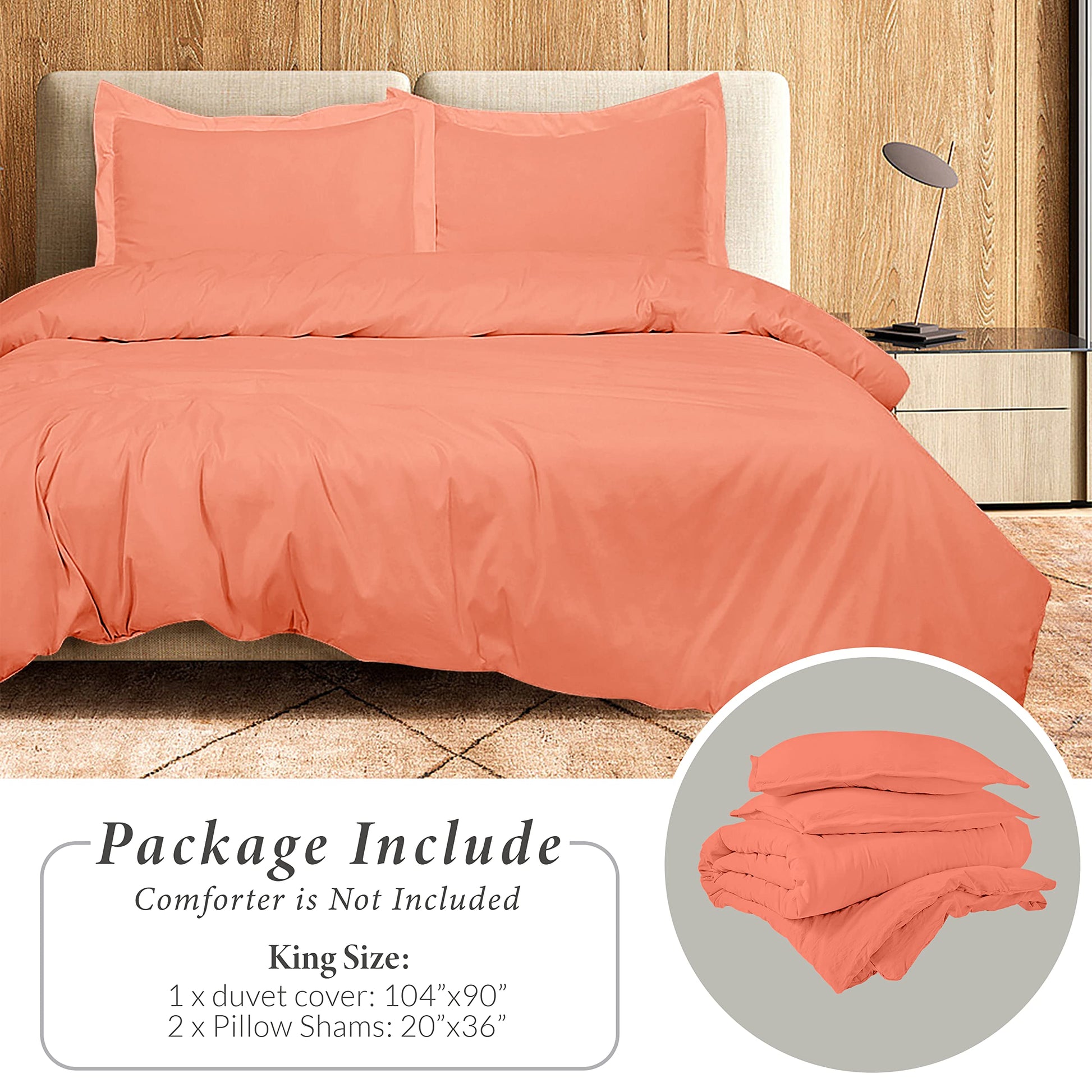 ROYALE LINENS Coral Duvet Cover - Duvet Cover Set - 3 Piece Double Brushed Duvet Covers with Zipper Closure, 1 Queen Duvet Cover and 2 Pillow Shams ( Coral)