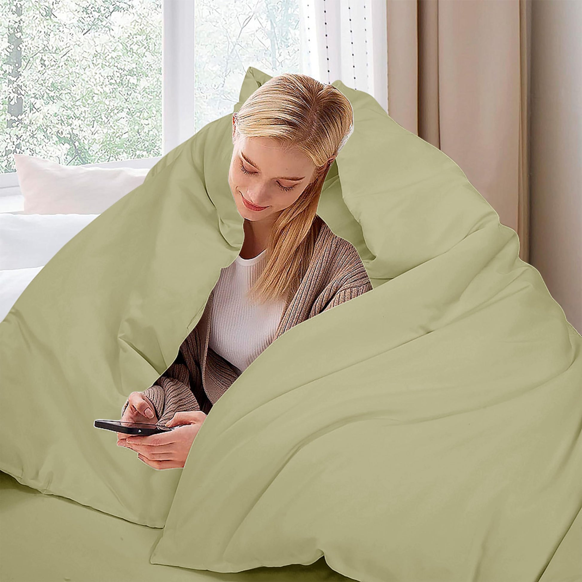 ROYALE LINENS Sage Green Duvet Cover - Duvet Cover Set - 3 Piece Double Brushed Duvet Covers with Zipper Closure, 1 Duvet Cover & 2 Pillow Shams ( SageGreen)