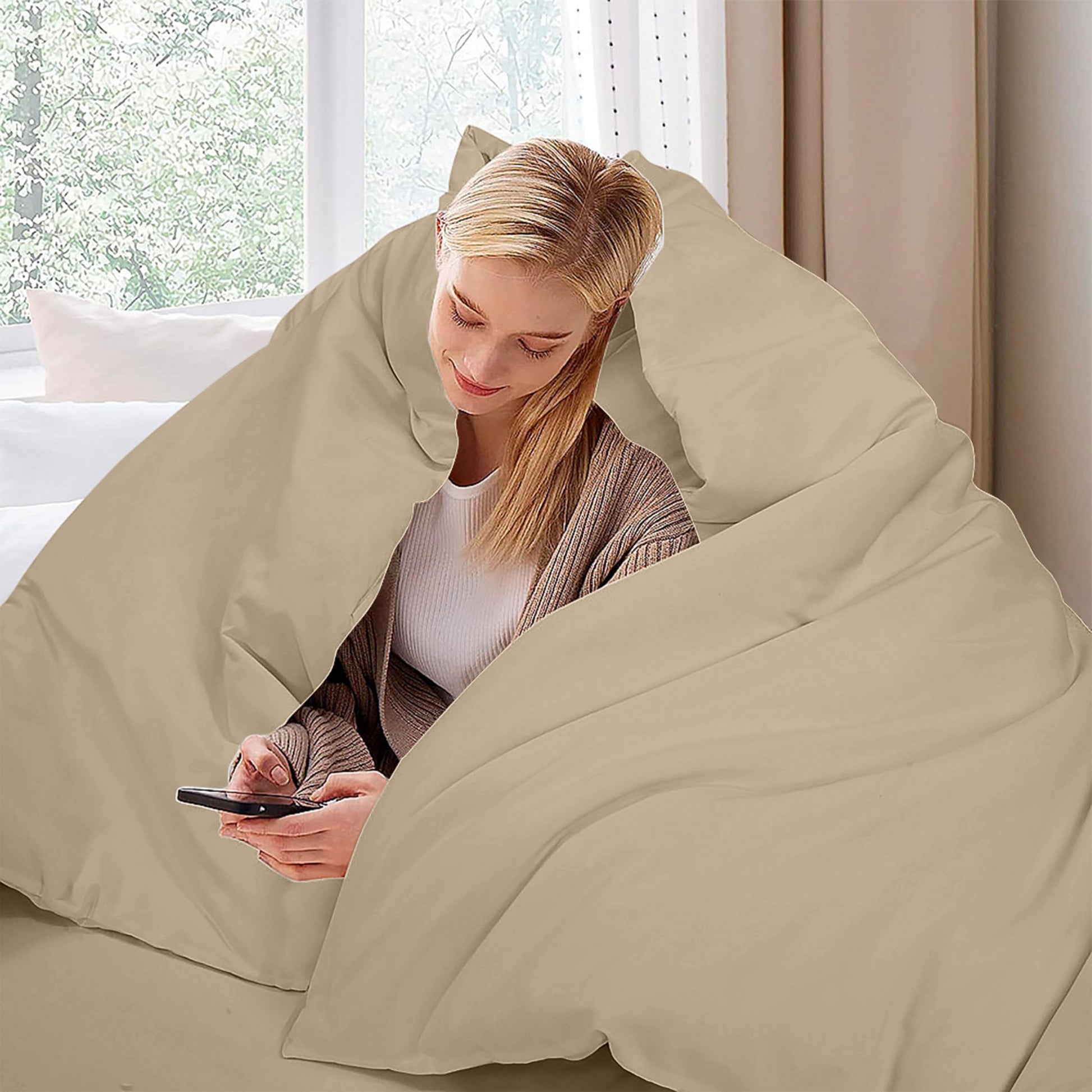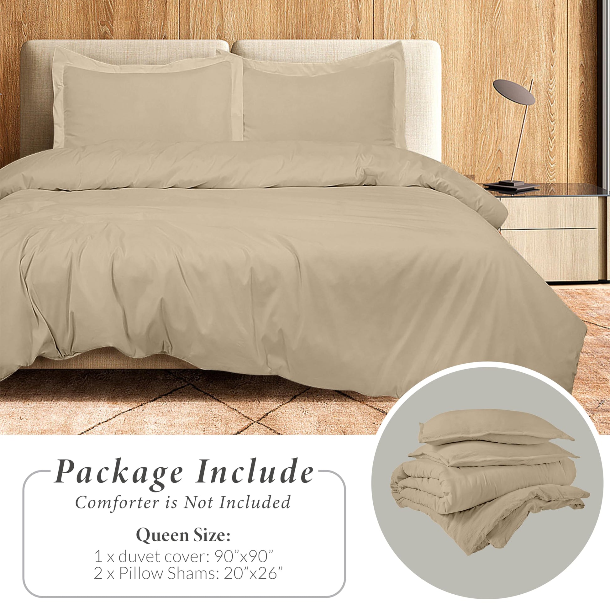 ROYALE LINENS Sand Duvet Cover - Duvet Cover Set - 3 Piece Double Brushed Duvet Covers with Zipper Closure, 1 Duvet Cover and 2 Pillow Shams ( Sand)