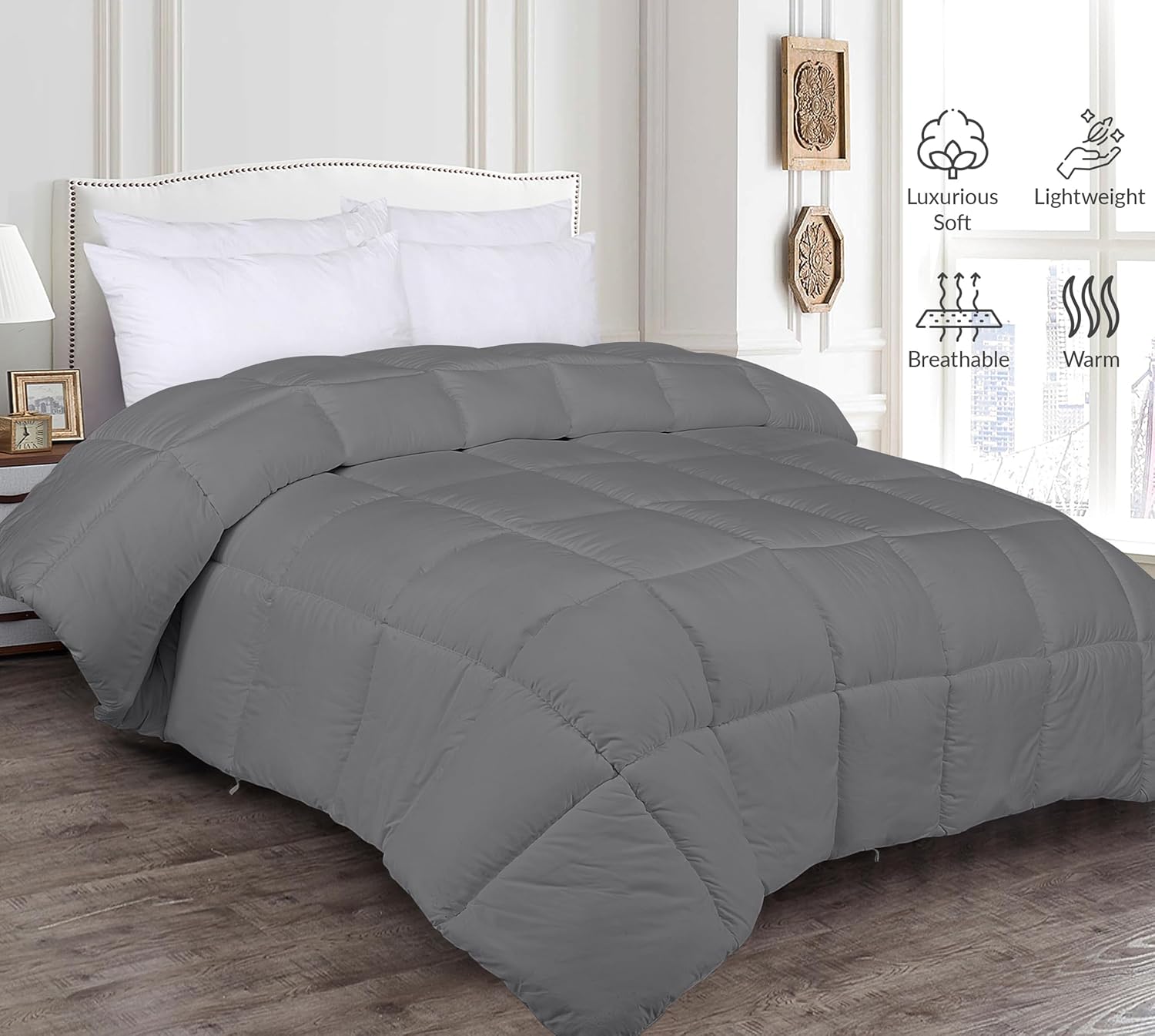 ROYALE Comforter - All Season Down Alternative Bedding Comforter - Lightweight Quilted Comforter with Corner Tabs - Ultra Soft Luxury Hotel Comforter - Box Stitched Duvet Insert ( Grey)