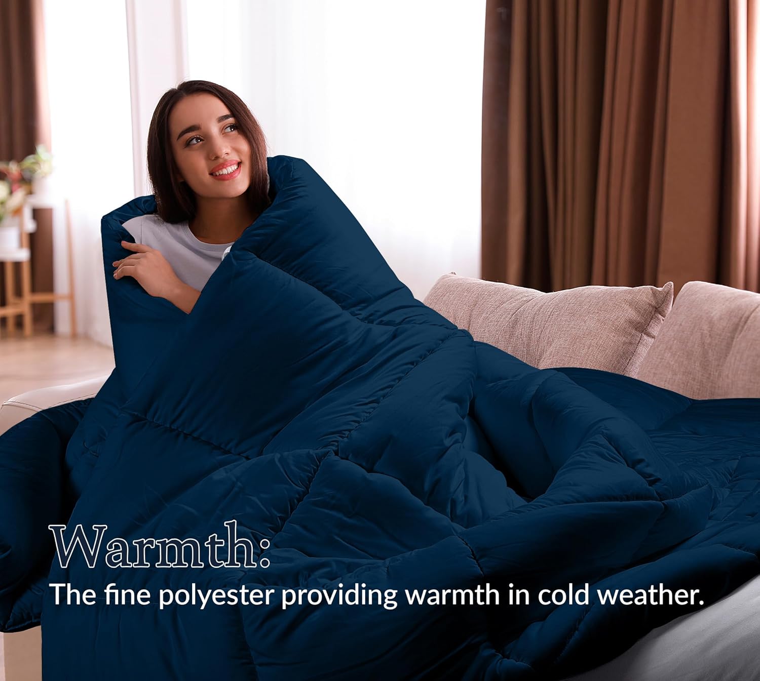 ROYALE Comforter - All Season Down Alternative Bedding Comforter - Lightweight Quilted Comforter with Corner Tabs - Ultra Soft Luxury Hotel Comforter - Box Stitched Duvet Insert ( Navy)