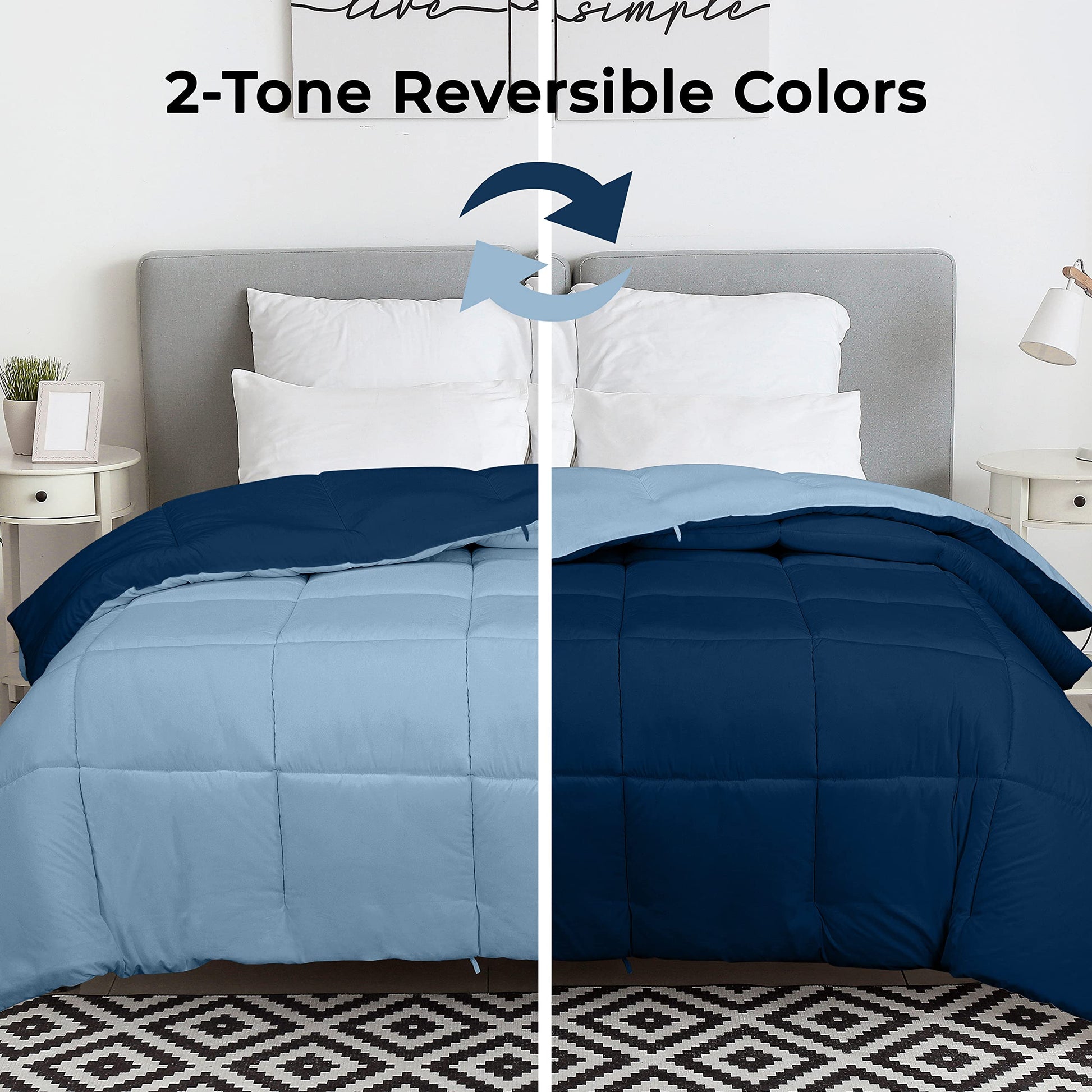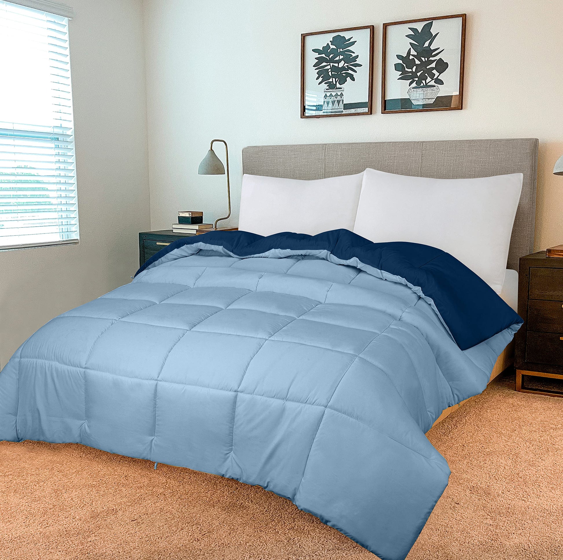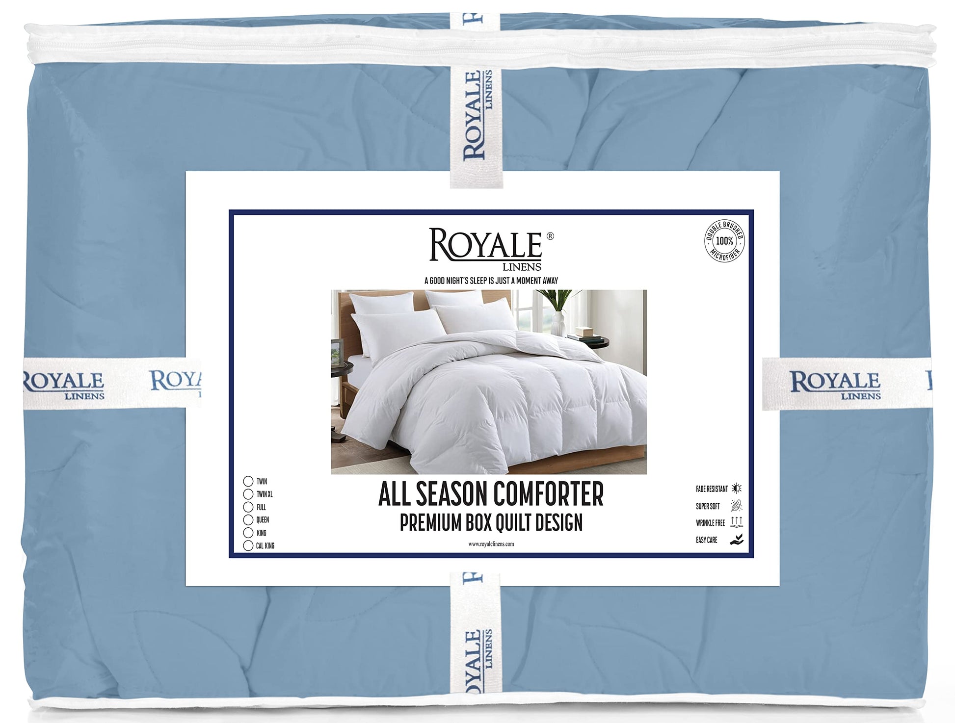 ROYALE Comforter - All Season Down Alternative Bedding Comforter - Lightweight Quilted Comforter with Corner Tabs - Luxury Hotel Comforter - Box Stitched Duvet Insert (Navy & Lake Blue)