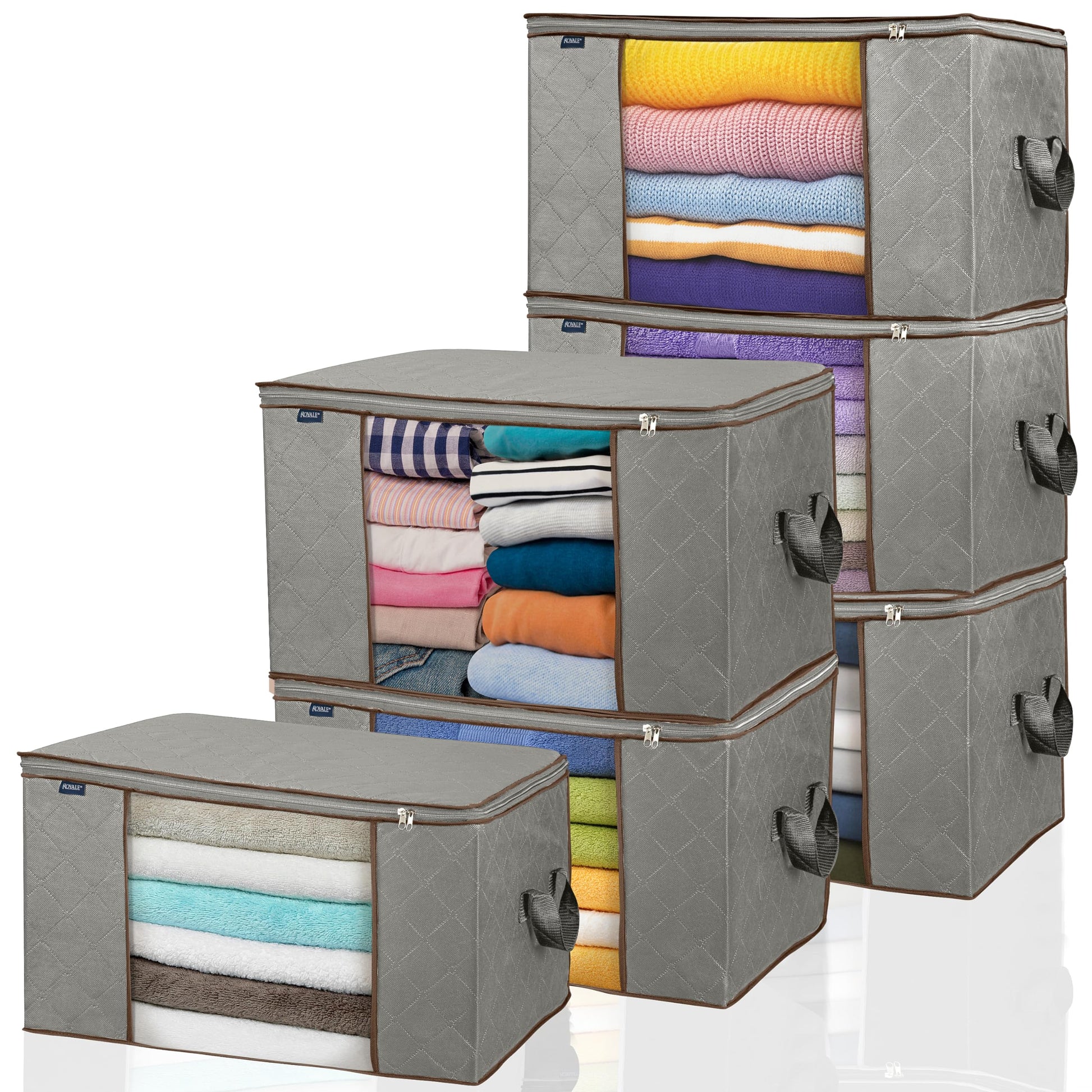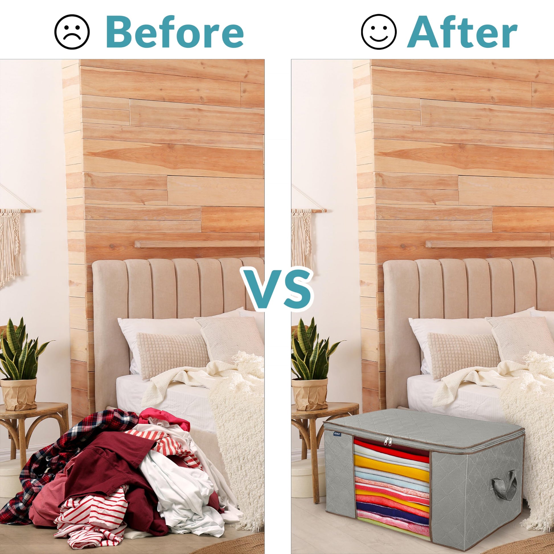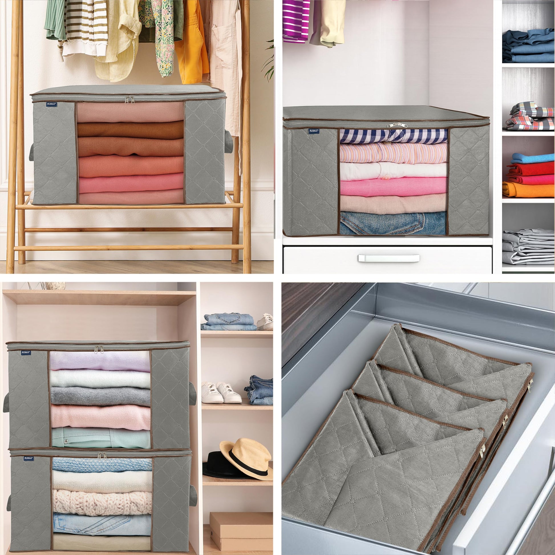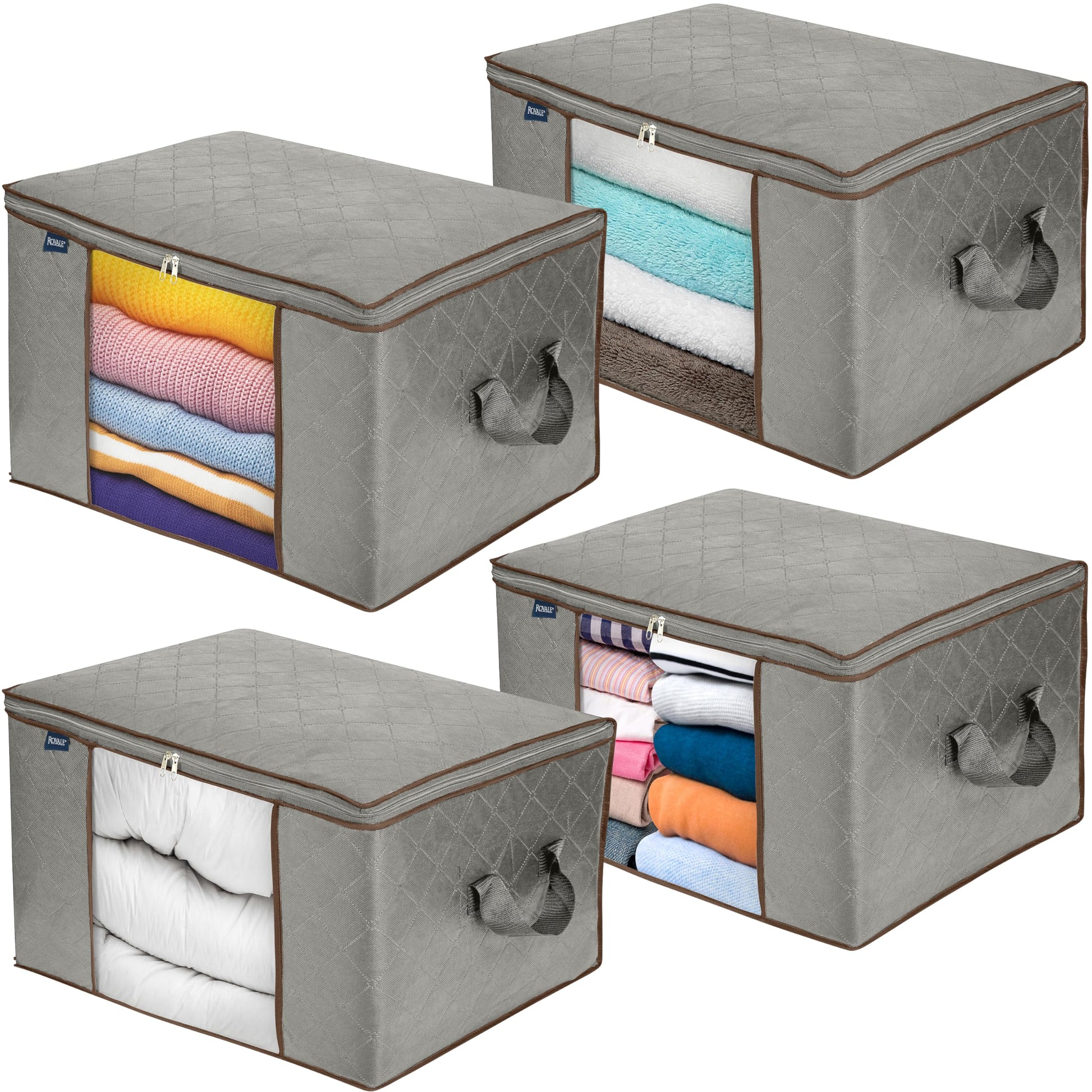 Royale Large Capacity Clothes Storage Bag Organizer with Strong Handle - 90L Fabric Bag- Zipper Closure - Storage Container for Organizing Bedroom, Closet, Clothing, Comforter with Clear Window