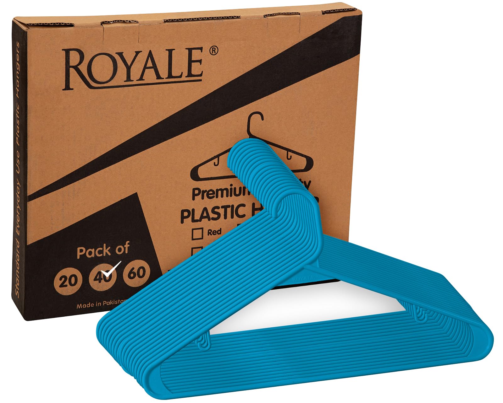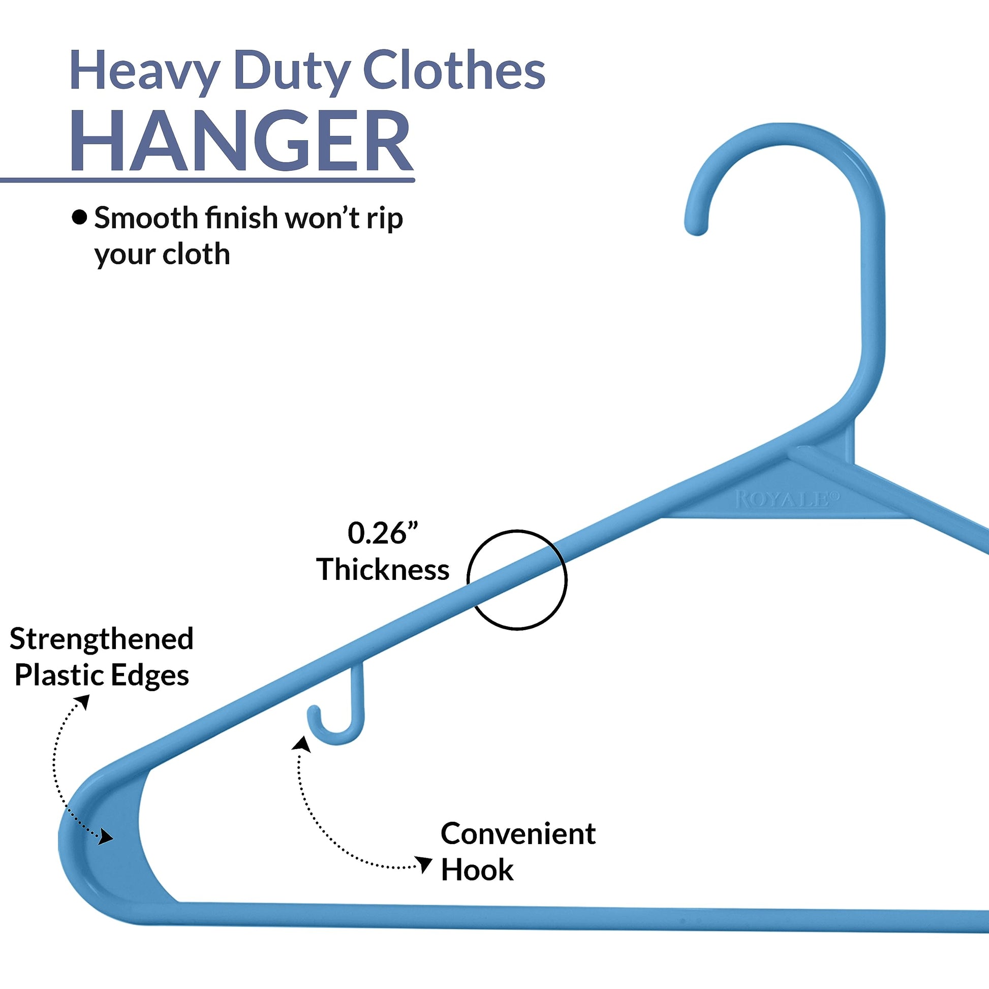 ROYALE Plastic Hangers - Blue Plastic Hangers - Clothes Hanger With Hooks – Heavy Duty Space Saving Coat Hangers Ideal For Everyday Use For Tops, Skirt, Dress, Shirts, Pants ( Blue)