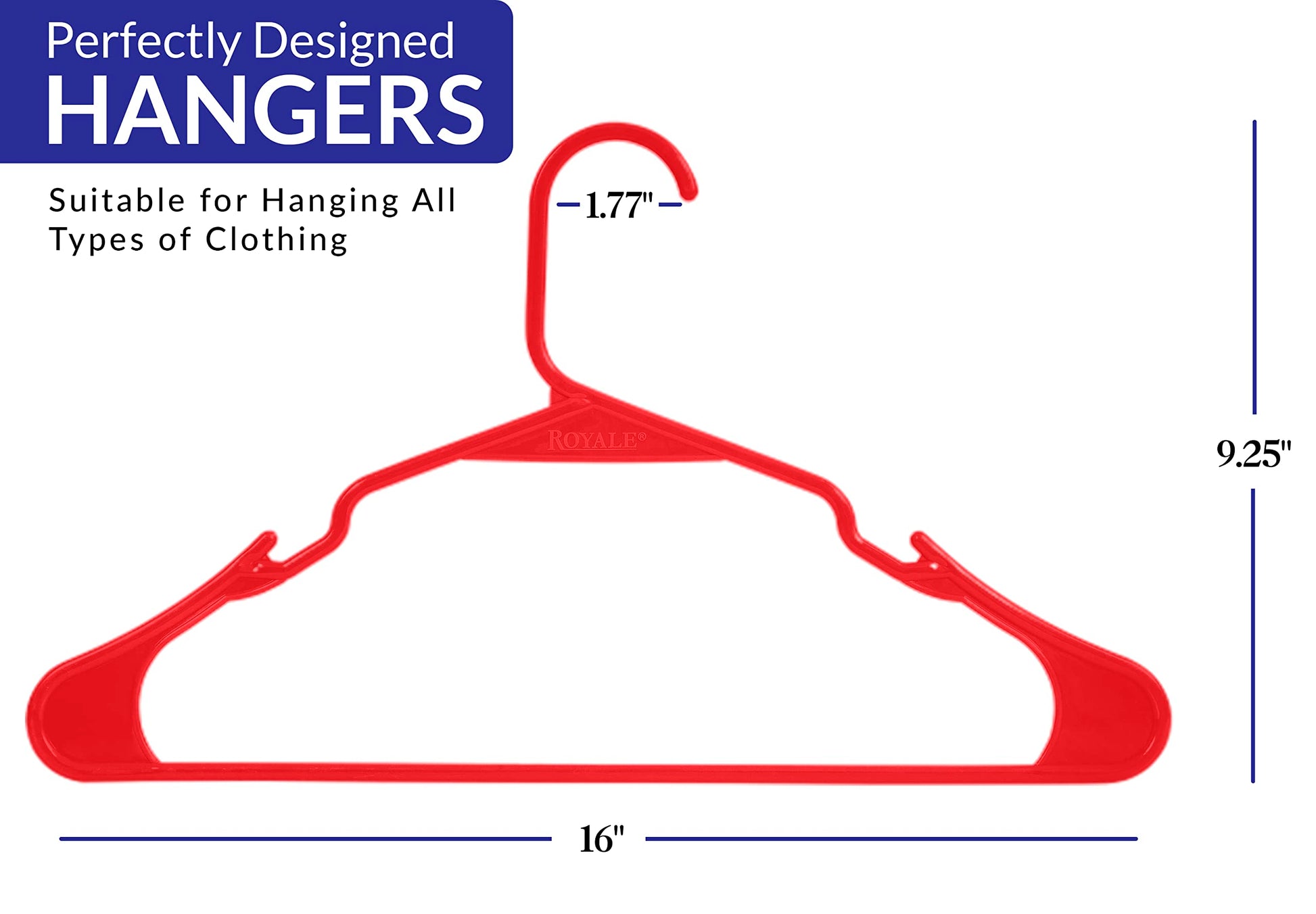 ROYALE Red Plastic Hangers for Clothes - Heavy Duty Plastic Clothes Hanger Ideal for Everyday Standard Use - Lightweight & Space Saving Notched Plastic Hangers - Slim & Sleek Shoulder Groove